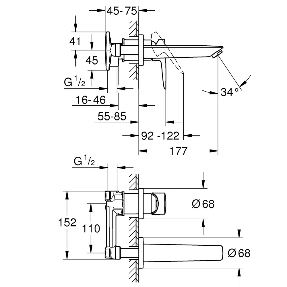 Змішувачі для умивальника настінні прихованого монтажу