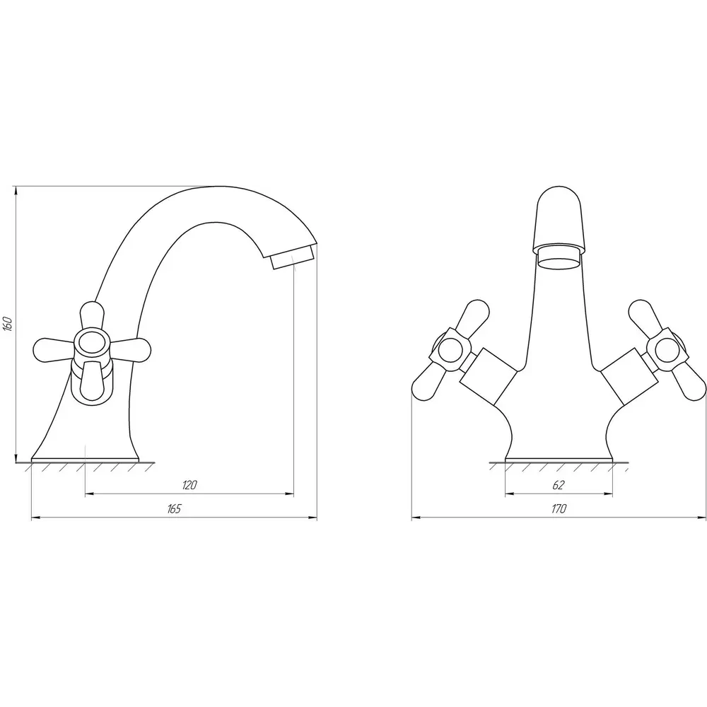 благодаря раздельным поворотным ручкам для холодной и горячей воды.