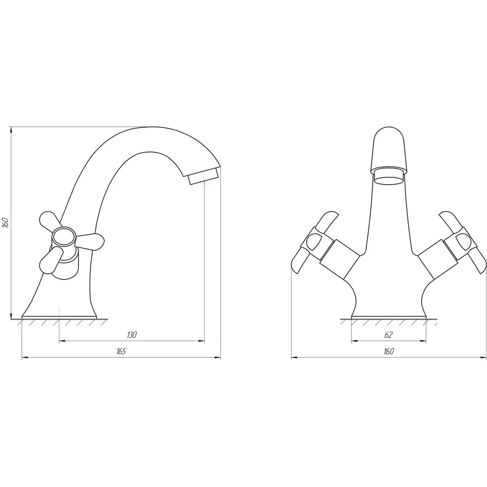 благодаря раздельным поворотным ручкам для холодной и горячей воды.