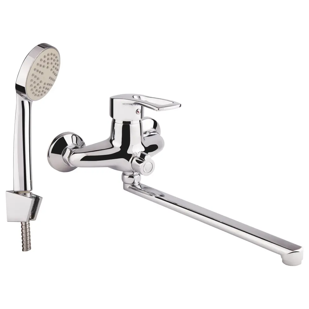 Смеситель для ванны GF (CRM) / S-04-005N с длинным поворотным изливом укомплектован держателем ручного душа, душевым шлангом и лейкой. Для включения потока воды предусмотрен удобный рычаг с отверстием и нанесенным маркировкой Х + Г воды, для переключения на душ - поворотный дивертор. Настенный монтаж осуществляется с помощью крепежных деталей, которые комплектуются вместе со смесителем. Круглые розетки скроют все погрешности установки.