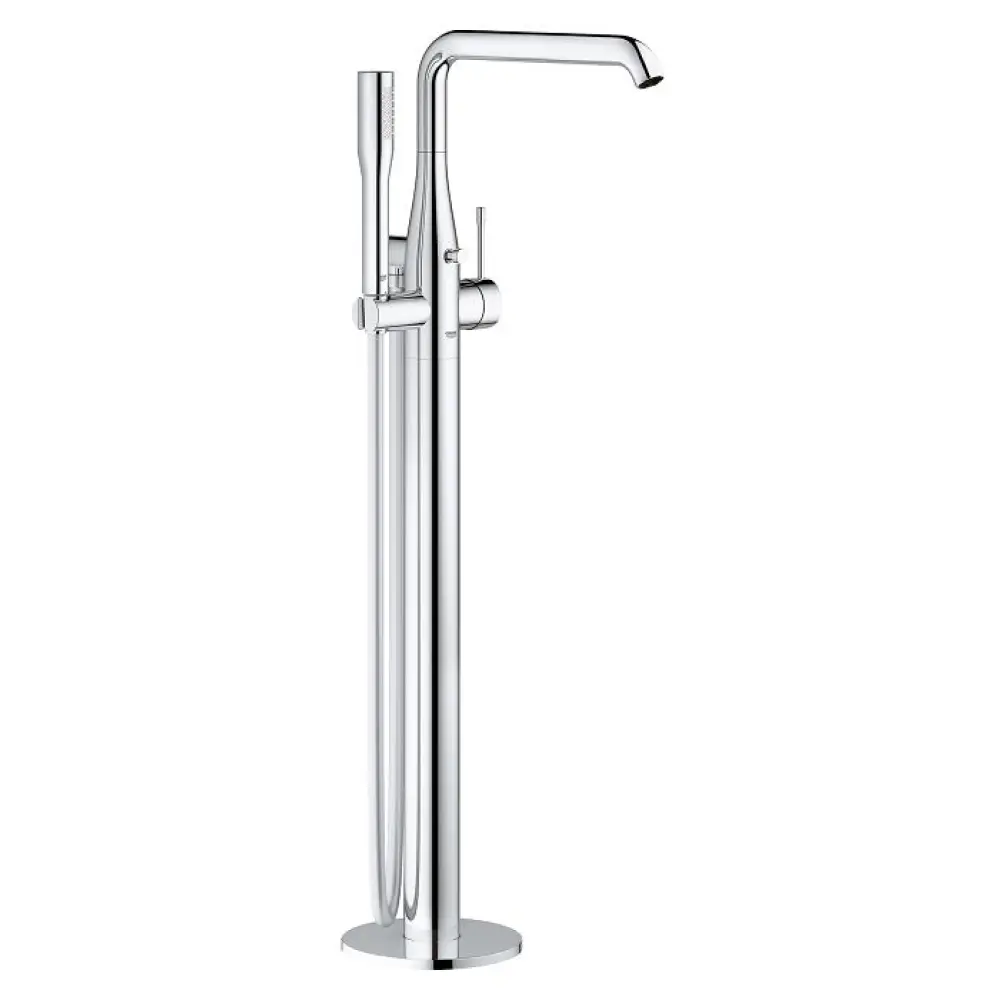 Смеситель Grohe Essence 23491001 прекрасно подойдет для ванны, которая стоит отдельно от стены. Он хромированную сияющую поверхность, устойчивая к образованию коррозии, загрязнений и истирания. Это гарантирует длительный срок эксплуатации изделия. Для включения подачи воды смеситель оборудован удобным рукояткой, а для переключения на душ - кронштейном, воронкой и вытяжным дивертор. Монтаж осуществляется в пол с помощью крепежных элементов и круглой розетки из комплекта.