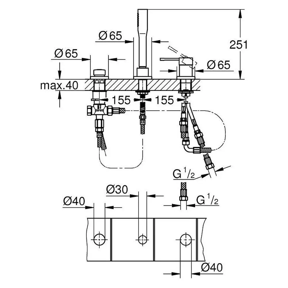 Елемент управління одноважільного змішувача, перемикач ванна або душ, ручний душ 27400000 (Ручний душ GROHE Euphoria Cosmopolitan (1 режим) з обмеженням витрати води, хром)