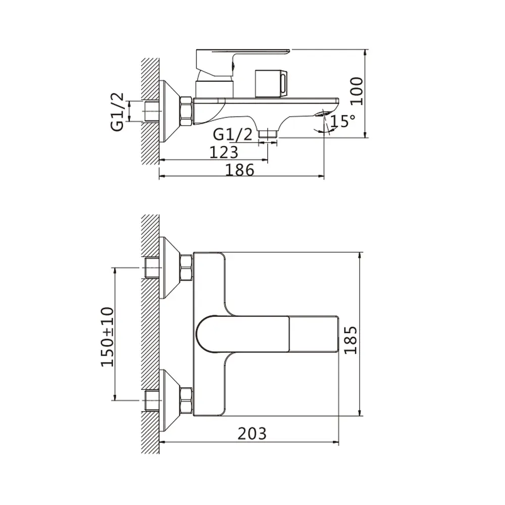 Шланг 150 см, ручна лійка, тримач для лійки, ексцентрики, чашки, гумові прокладки, керівництво по експлуатації та гарантійний талон