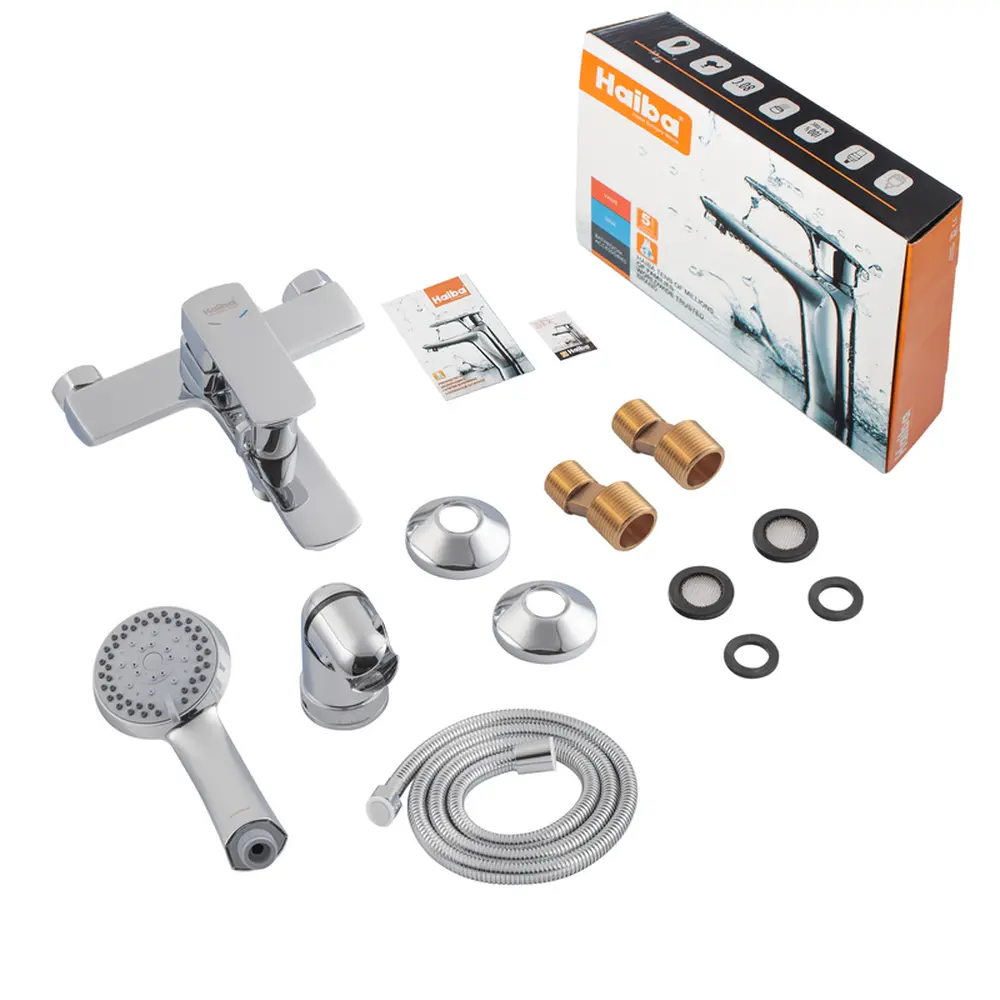 Шланг 150 см, ручна лійка 5 режимів розміром 8х21 см, тримач для лійки, ексцентрики, чашки, гумові прокладки, посібник з експлуатації та гарантійний талон