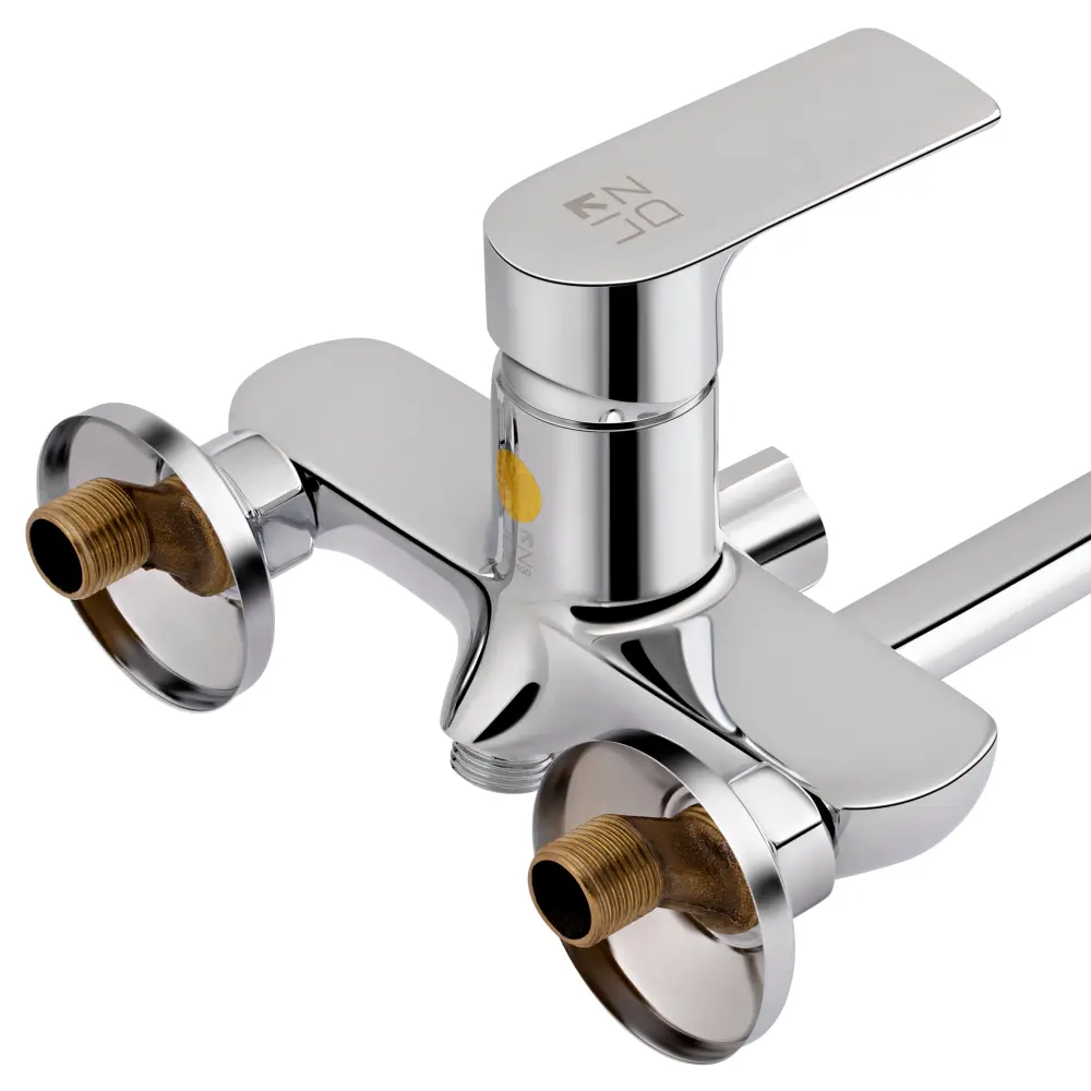 Смеситель для ванны Lidz (CRM) 23 48 005A-1 New с длинным поворотным изливом изготовлены из цинка, укомплектован кронштейном для ручного душа, душевых шлангом и лейкой. Благодаря хромированном покрытию имеет прочную поверхность и привлекательный внешний вид. Декоративные розетки скроют погрешности установки на отделке комнаты. Напор воды и ее температура регулируются поворотом рычага в нужное положение. Переключение ванна / душ осуществляется с помощью дивертора.