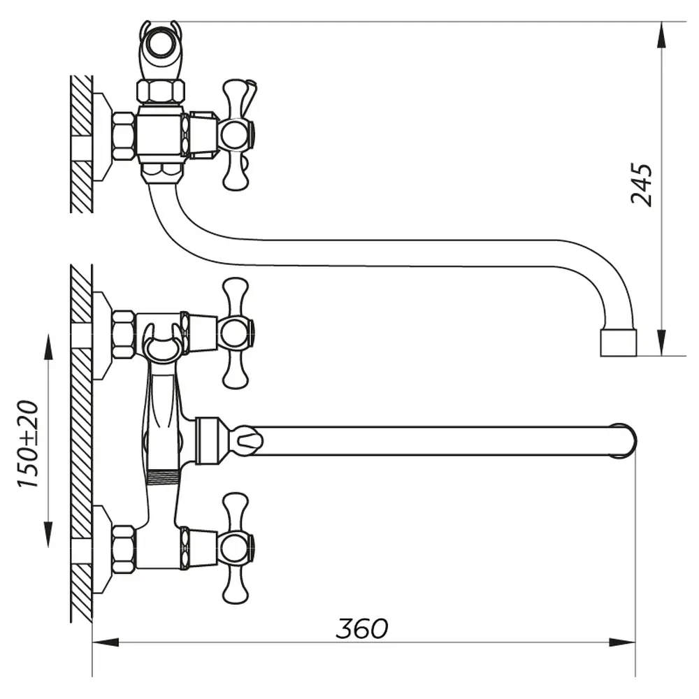 Шланг 150 см, ручна лійка розміром 7х27 см, тримач для лійки, аератор, ексцентрики, чашки, гумові прокладки