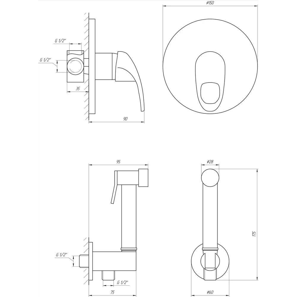 Смеситель для биде встроенный Globus Lux SENA GS-0110, гигиенический