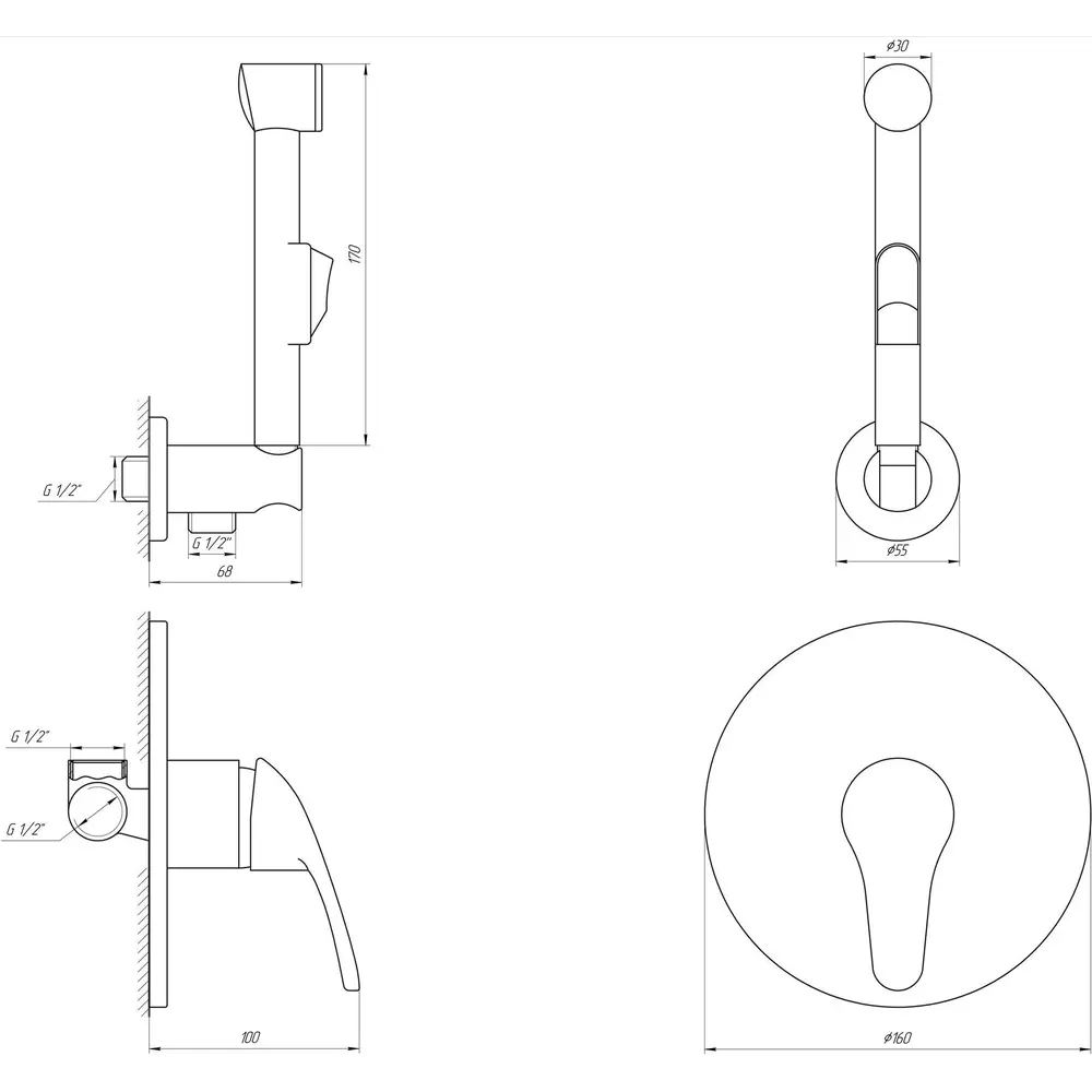 Смеситель для биде Globus Lux SOLLY GLSO-0110 встроенный гигиенический