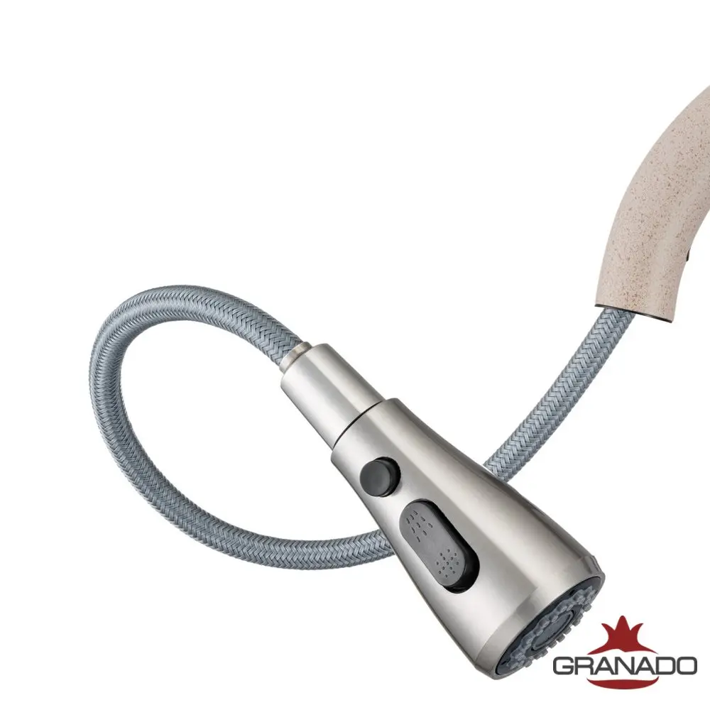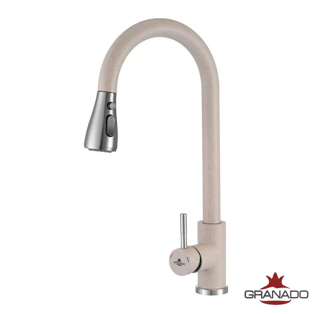 Смеситель для мойки GRANADO Campo Avena h2> С таким смесителем вы сами можете выбирать, куда направить струю воды, каким он должен быть, насколько распылены капли воды и интенсивность потока. И это все - не в координатах "слева-направо", "больше-меньше", а целиком на ваше усмотрение! Div> Все, что вам нужно - просто снять аэратор и направить его в нужном направлении. На аэраторе есть рычаг, которым можно выбирать различные струи и степень рассеяния воды. А также - кнопка, чтобы остановить поток воды и не намокнуть, пока выбираете нужный ракурс расположения утечки. Div>