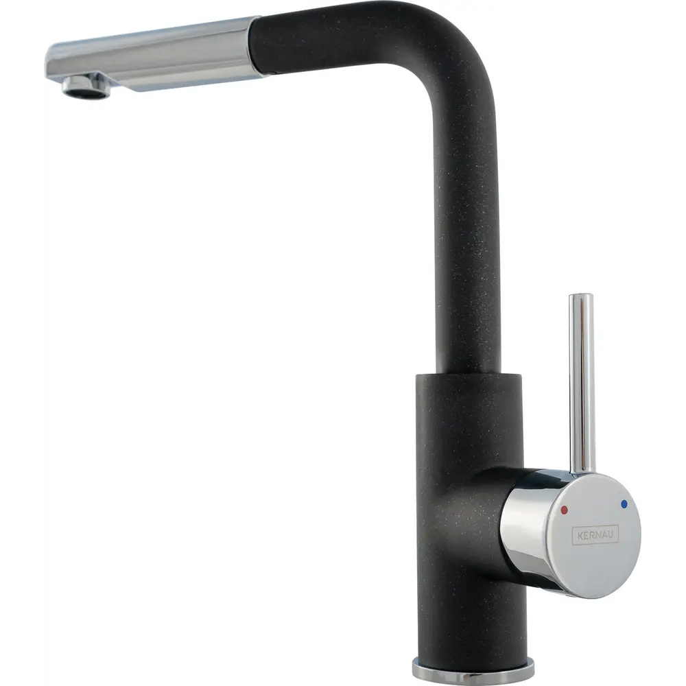 Смеситель KWT 06 PO - это отличный смеситель для гранитных моек. Аэратор, каким он был оборудован, засасывая воздух смешивает его с водой, увеличивая ее объем, что, в свою очередь, уменьшает потребление воды до 50%. Кроме того, аэратор смягчает воду, предотвращая появление пятен на посуде и мойке. Смеситель имеет поворотный выдвижной носик. Выдвижной носик позволяет тщательно вымыть посуду или продукты питания, стоящие на кухонной мойке. В смесители установлена система удаления накипи. Керамический картридж позволяет точно регулировать расход воды и ее температуру. Надежный, долговечный и оригинальный смеситель, безусловно, доставит удовольствие своим пользователям.
