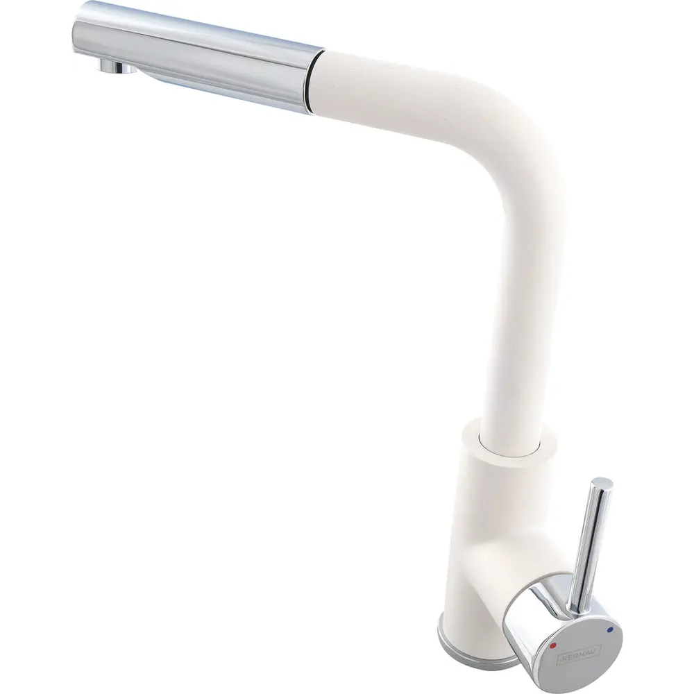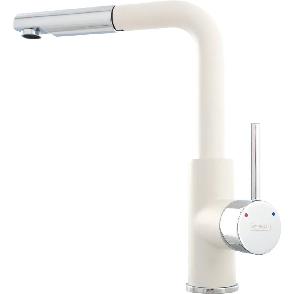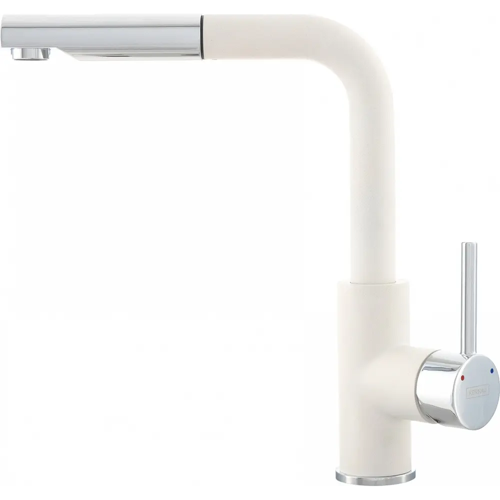 Смеситель KERNAU KWT 06 PO - это отличный смеситель для гранитных моек. Аэратор, каким он был оборудован, засасывая воздух смешивает его с водой, увеличивая ее объем, что, в свою очередь, уменьшает потребление воды до 50%. Кроме того, аэратор смягчает воду, предотвращая появление пятен на посуде и мойке. Смеситель имеет поворотный выдвижной носик. Выдвижной носик позволяет тщательно вымыть посуду или продукты питания, стоящие на кухонной мойке. В смесители установлена система удаления накипи. Керамический картридж позволяет точно регулировать расход воды и ее температуру. Надежный, долговечный и оригинальный смеситель, безусловно, доставит удовольствие своим пользователям.
