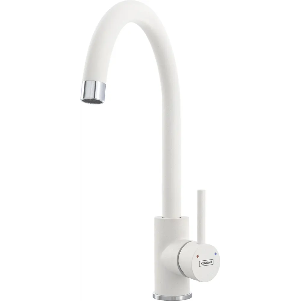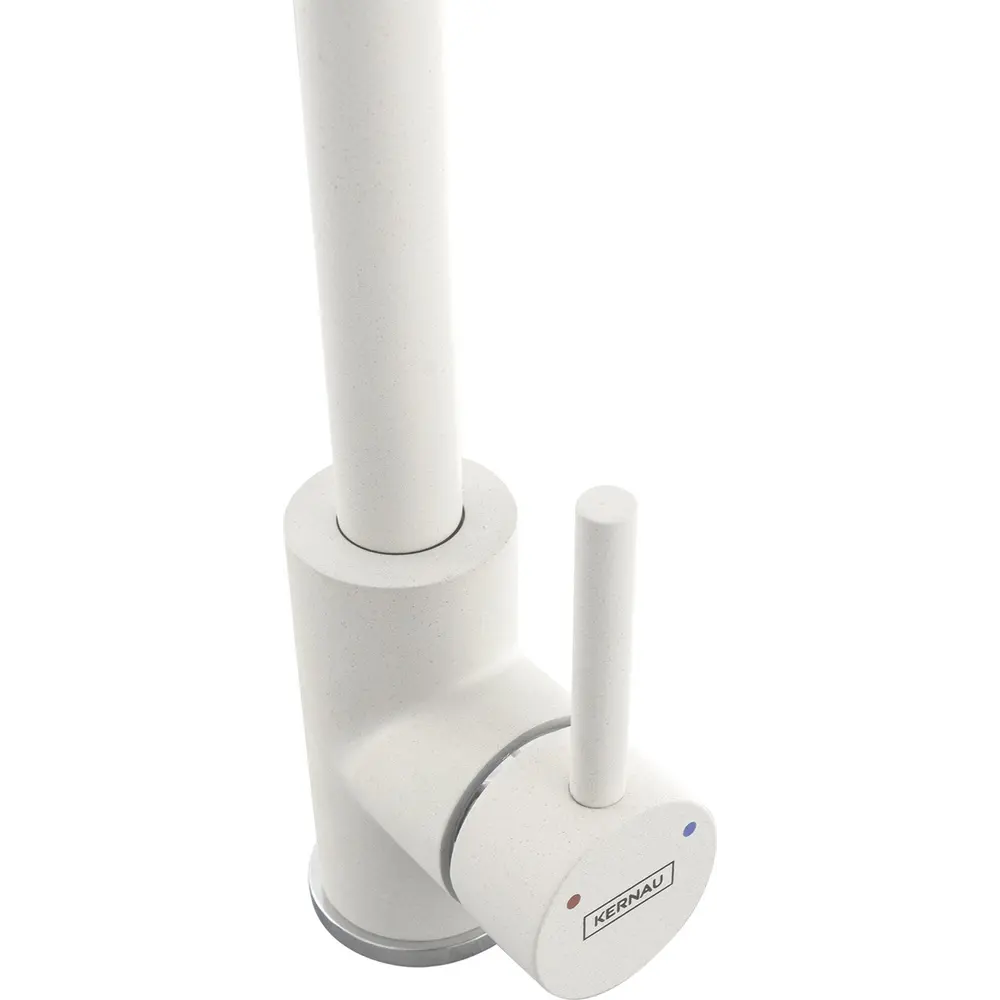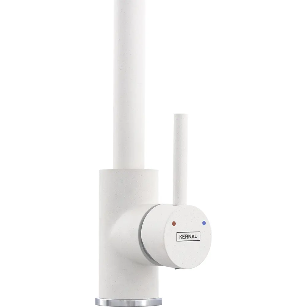 Смеситель KERNAU KWT 07A предназначен для гранитных моек. Он оснащен поворотным носиком и аэратором, который позволяет экономить до 50% воды. Аэратор также смягчает воду, и это предотвращает появление пятен от отложений накипи на стенках мойки или посуды. Керамический картридж, присутствующий в кране, позволяет точно регулировать водный поток и его температуру. Этот замечательный кран удачно привлечет внимание всех пользователей и придаст кухне неповторимый и элегантный стиль. Кроме того, его легко разобрать и установить благодаря системе крепления Easy Fix.