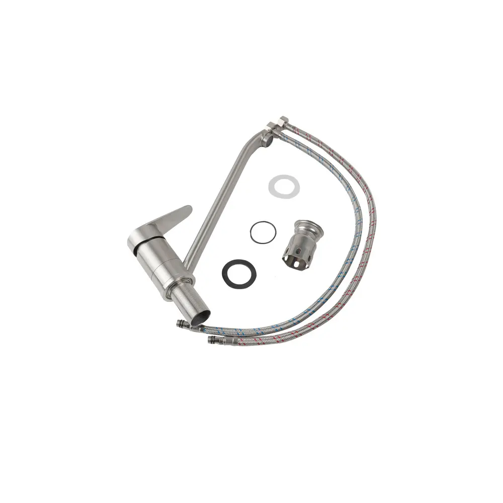 Бренд: GERMECE Тип смесителя: Смеситель кухонный Тип выброса : статический Материал ++: Нержавеющая сталь SUS 304 Высота смесителя, мм: 120,5 Картридж: 40 Крепления: гайка Длина гибкой подводки, мм: 450 Шт. в коробке: 10 шт Шт. в упаковке: 1 шт Высота от основания до носике, мм: 150,5 Цвет излива: Нержавеющая сталь Вид смесителя: Джойстик Комплектация: Смеситель, крепления, гибкая подводка Подключение: к водопроводу Вид монтажа: Внешний Гарантия: 1 год