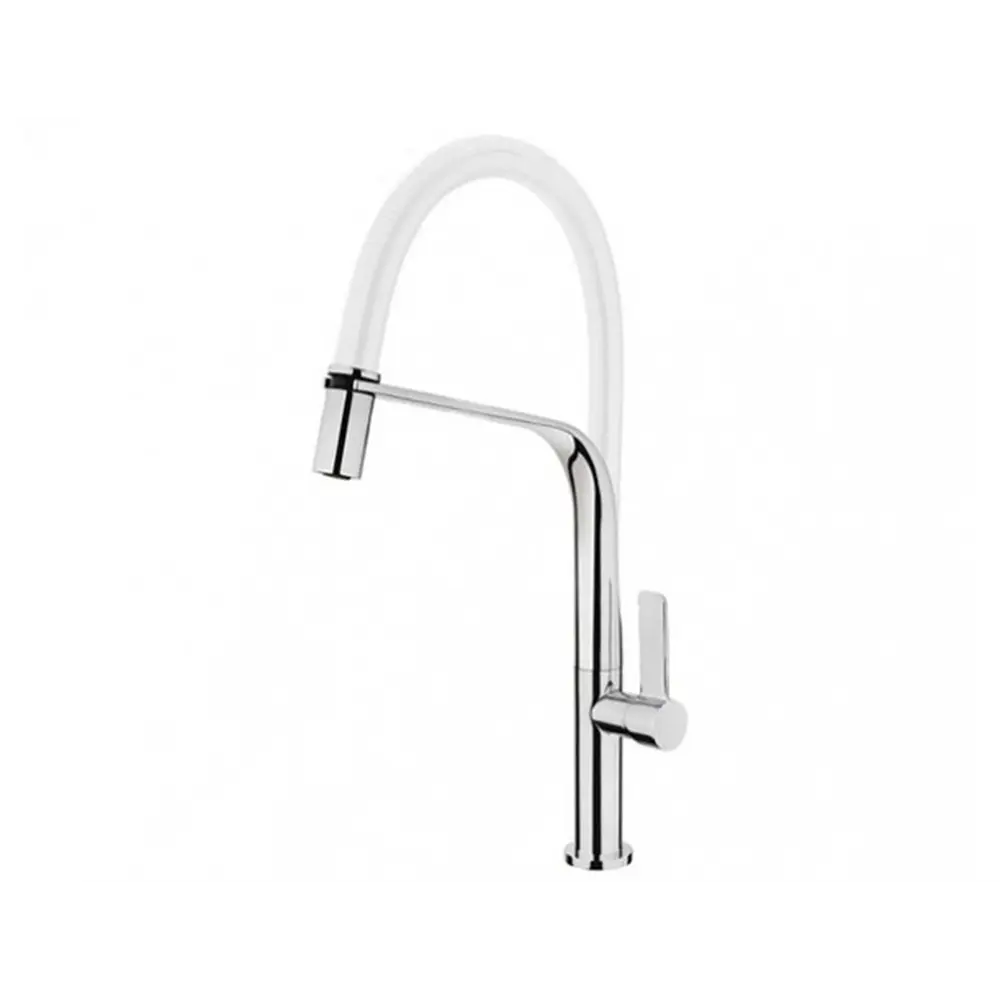 врiзний кухонный смеситель с одним рычагом Teka FO 997 (62997020FW) белый / хром с гибким поворотным изливом, рычагом сбоку и аэратором с защитой от образования накипи. P>