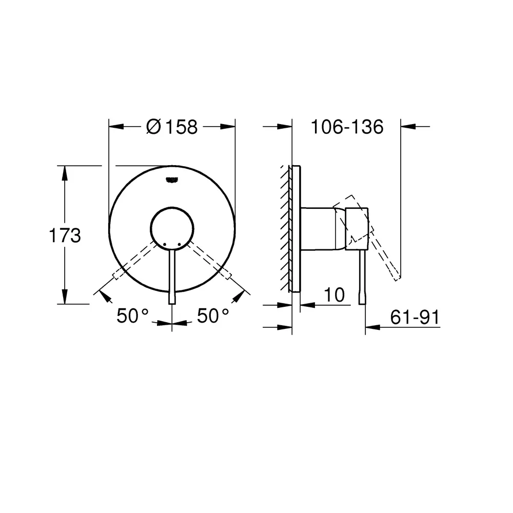 Для монтажу із вбудованою частиною змішувача Rapido SmartBox 35600000 від Grohe (купується окремо). Квадратна, декоративна настінна пластина розміром (ВхШ): 158х158 мм. Металева настінна накладка, припасування в межах 6°. На три споживачі