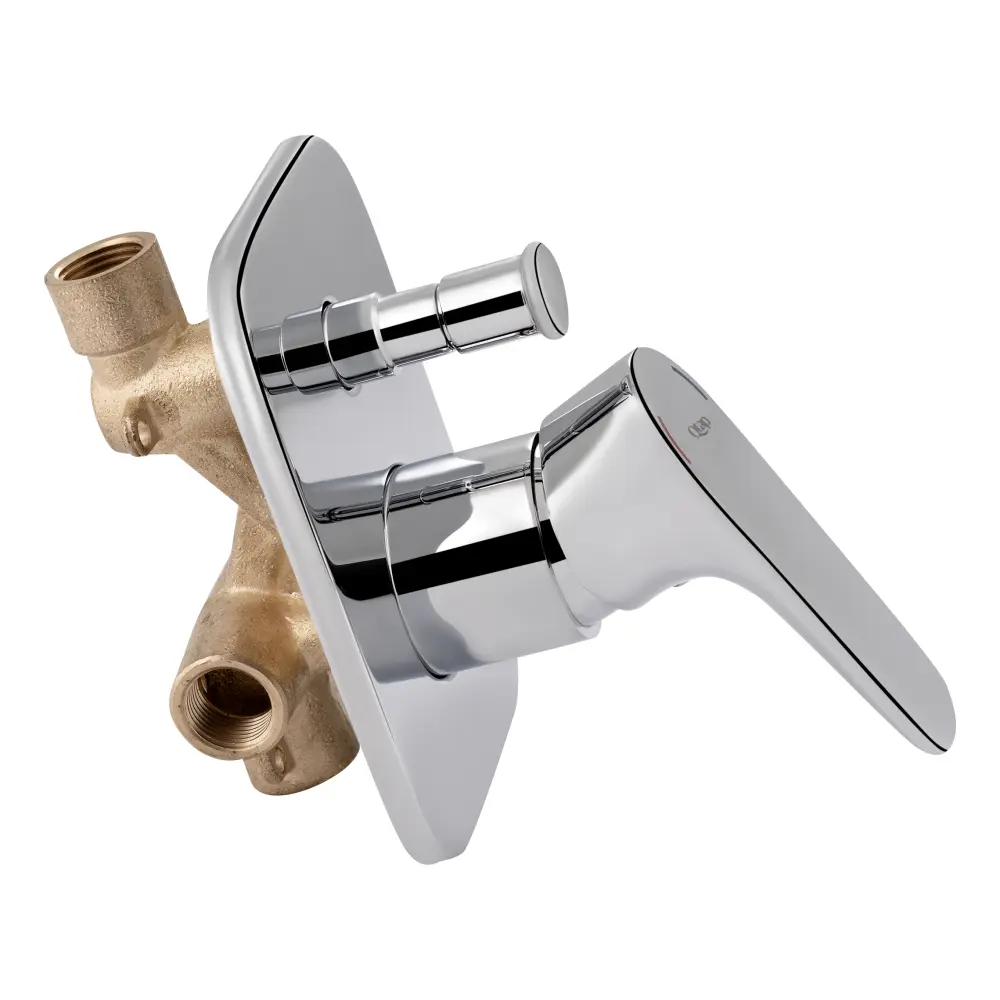 Смеситель скрытого монтажа для душа Qtap Flaja 6210102NDC для двух потребителей - это отличное решение для современной ванной комнаты. Он придаст оригинальность интерьера ванной, а крепкая хромированная поверхность сохранит внешний вид смесителя на долгие годы. Функциональная часть изготовлена из высококачественной латуни, устойчивой к коррозии. Управление потоком воды осуществляется с помощью удобного рычага. Установка смесителя осуществляется с помощью креплений, входящих в комплектацию.