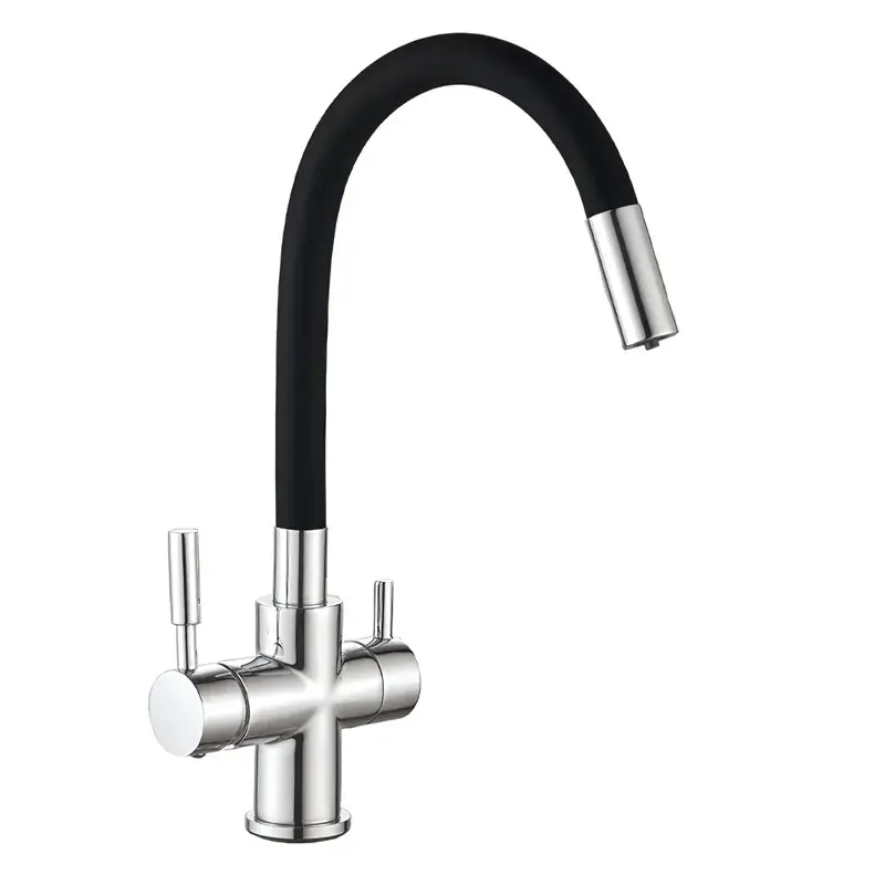 • С двумя изливами – одна часть смесителя используется для обычной воды, другая – для питьевой.