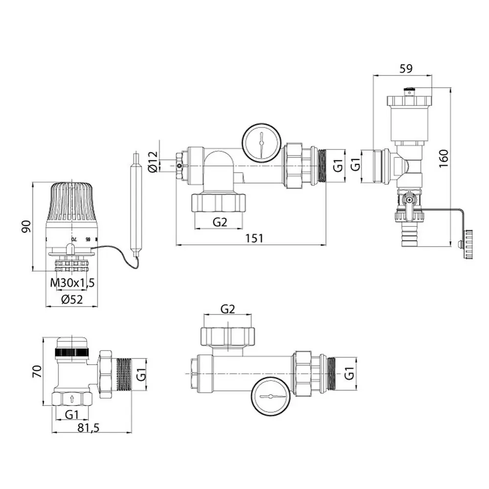 Діапазон шкали термометра: 20÷120°C; Максимальна температура теплоносія у первинному контурі: 90°C; Діапазон налаштування температури у вторинному контурі: 20÷60°C