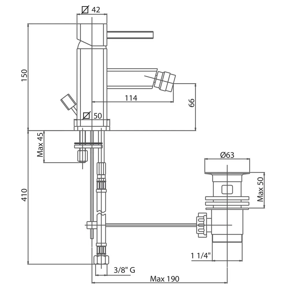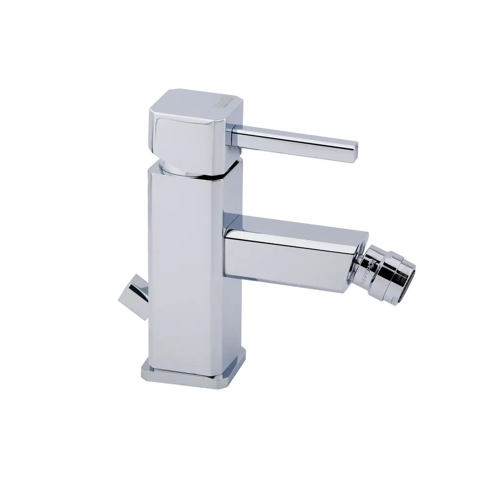 Змішувач для біде Bianchi Kubik BIDKBK2003#IACRM має стаціонарний вилив, зручний важіль для увімкнення води, невеликий важіль ззаду для включення самого виробу та носик з виносом. Хромована поверхня стійка до корозії та збереже свій блиск на довгі роки завдяки виготовленню з латуні, додаванню нікелю товщиною 11 мкм і порошкової фарби. Виріб монтується врізним способом на обідок біде з донним клапаном і шлангами підключення, які входить до комплекту поставки. На важіль нанесено фірмовий логотип.