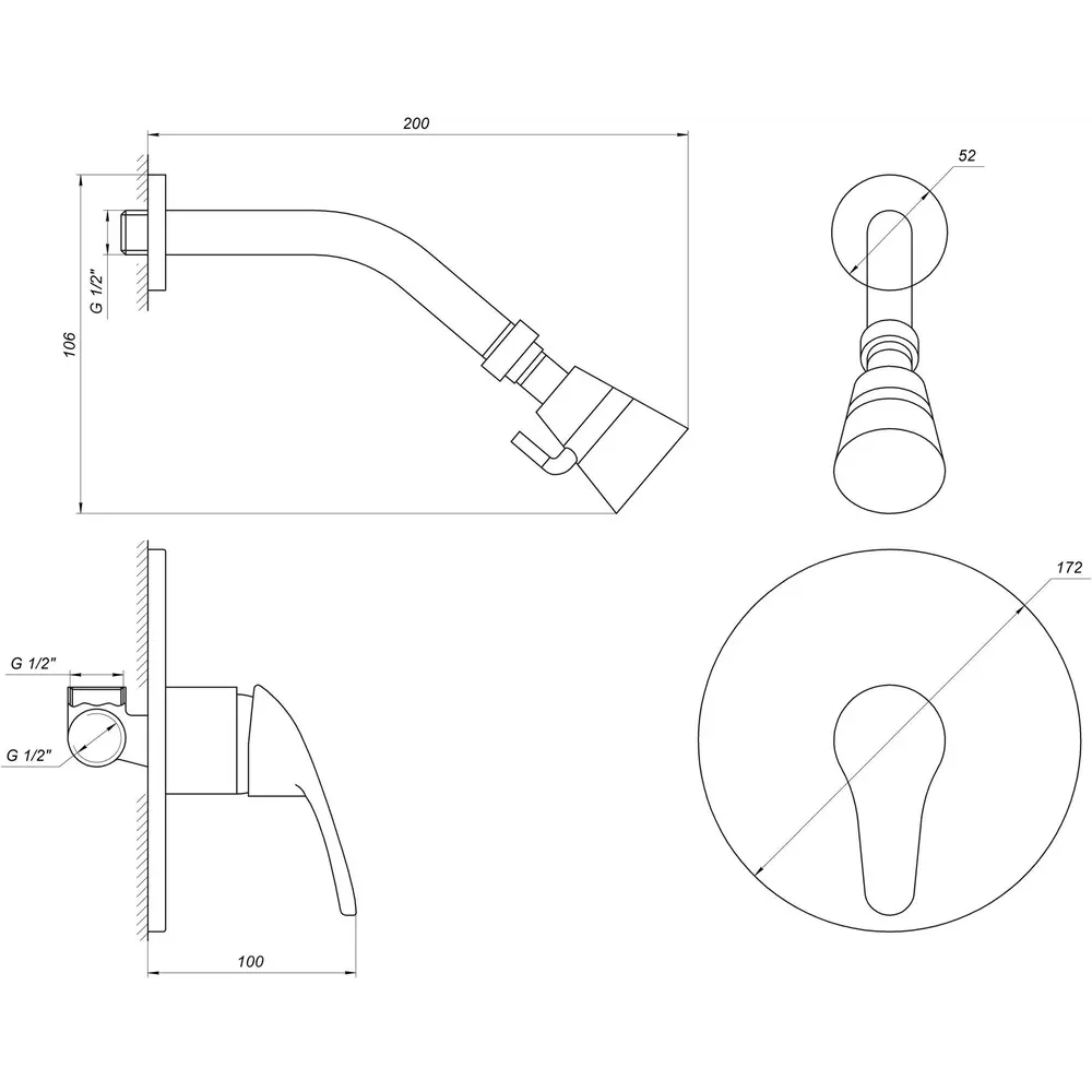 Змішувач для душа Globus Lux SOLLY GLSO-0105S вбудований, душовий комплект