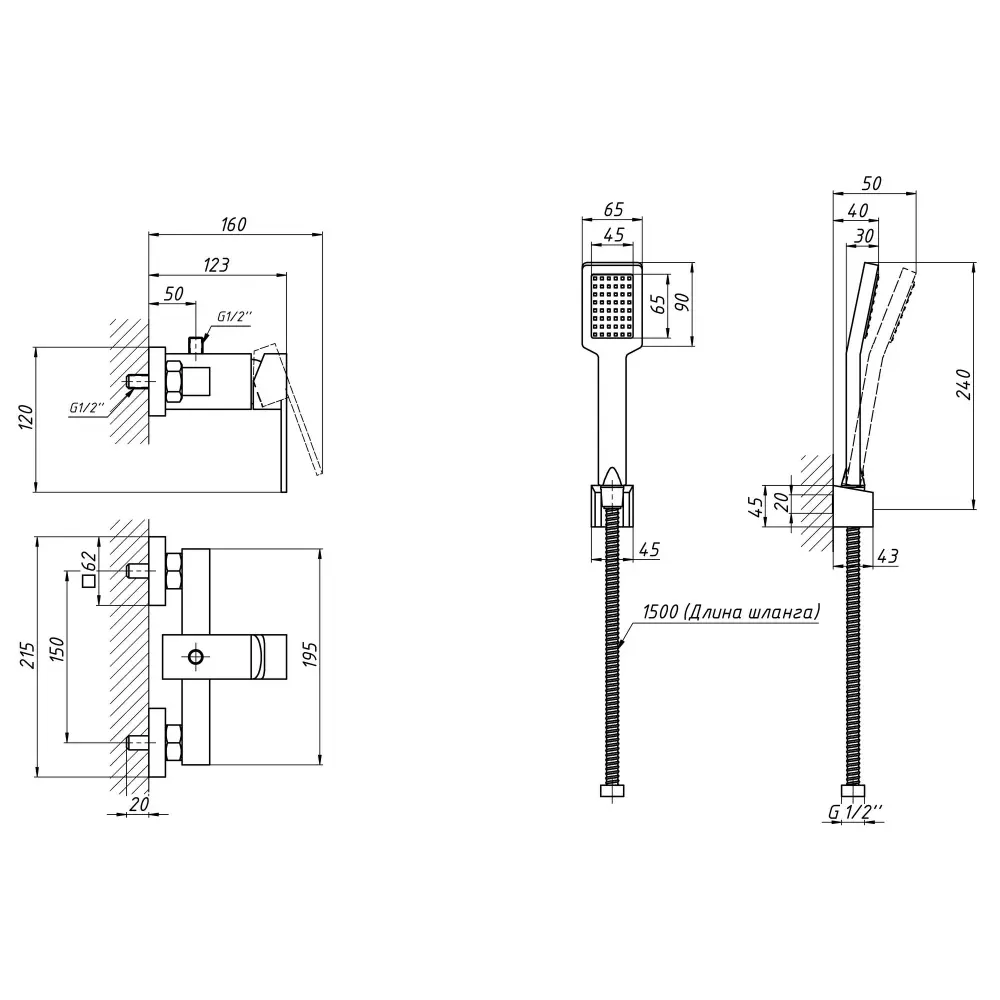 Змішувач, Лійка для ручного душу, Душовий шланг, Кронштейн для ручного душу, Кріпильні деталі