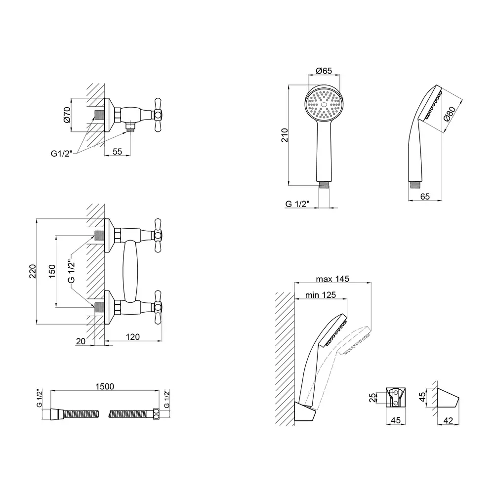 Змішувач, Лійка для ручного душу, Душовий шланг, Кронштейн, Кріпильні деталі