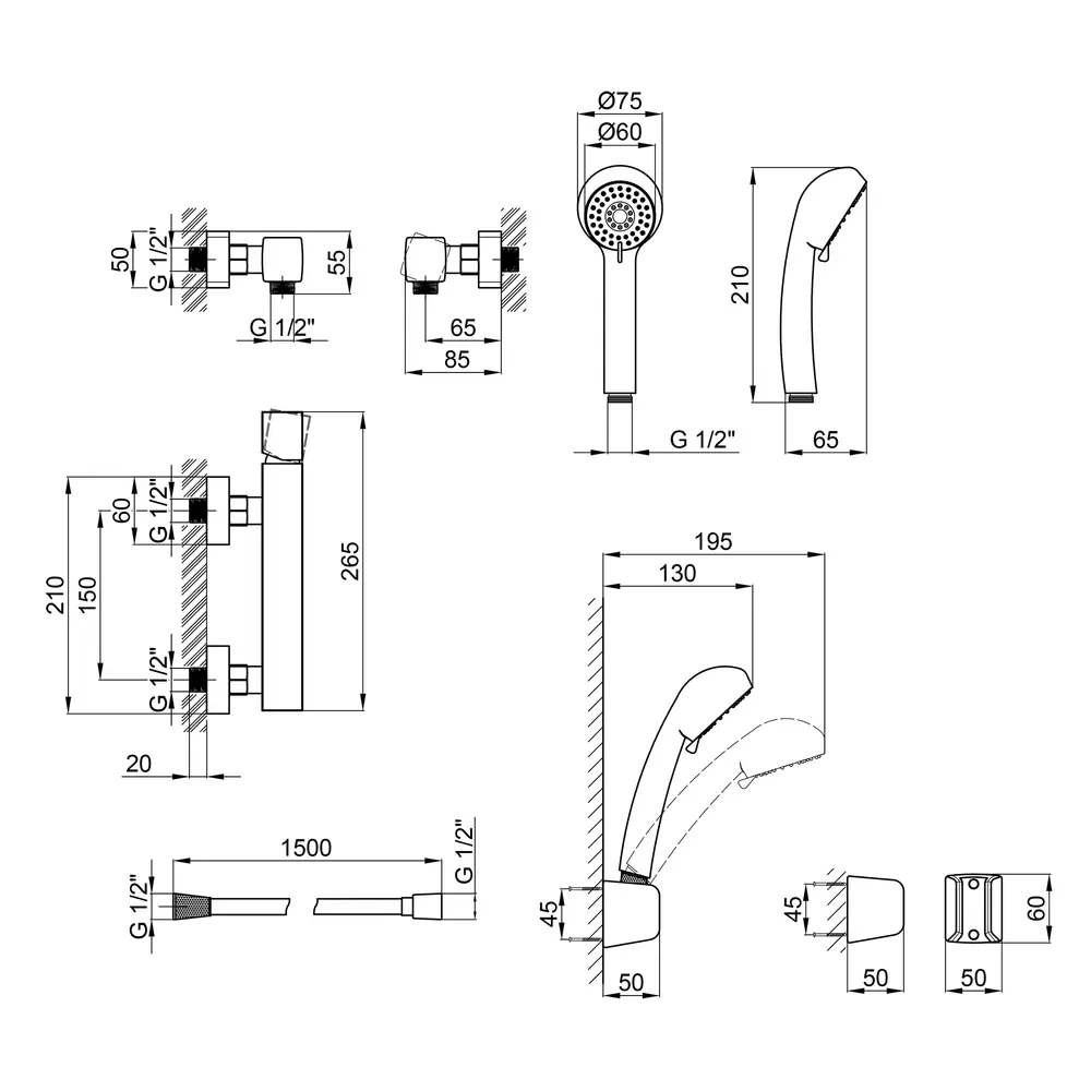 Змішувач, Лійка для ручного душу, Душовий шланг, Кронштейн для ручного душу, Кріпильні деталі
