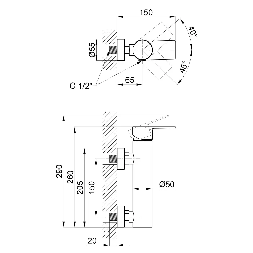 Змішувач для душу Qtap Stenava 4045102C виготовлено з високоякісної латуні, що не схильна до корозії, стійка до утворення вапняного нальоту та іржі. Завдяки хромованому покриттю має міцну поверхню і привабливий зовнішній вигляд. Управління водним потоком здійснюється за допомогою зручного важеля. Сучасний дизайн змішувача може органічно інтегруватися в інтер‘єр ванної кімнати.