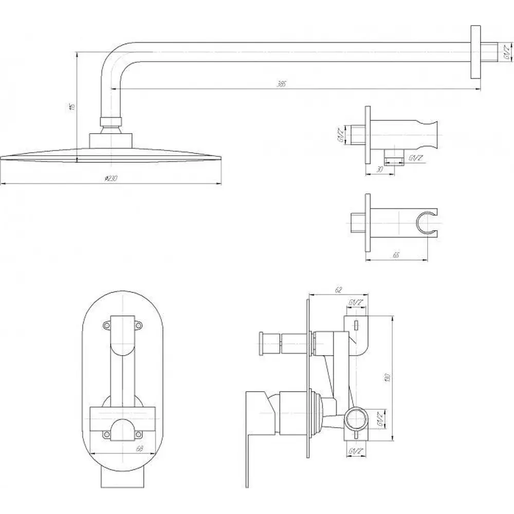 Вид монтажу душової системи: Настінний, на 2 виходи води