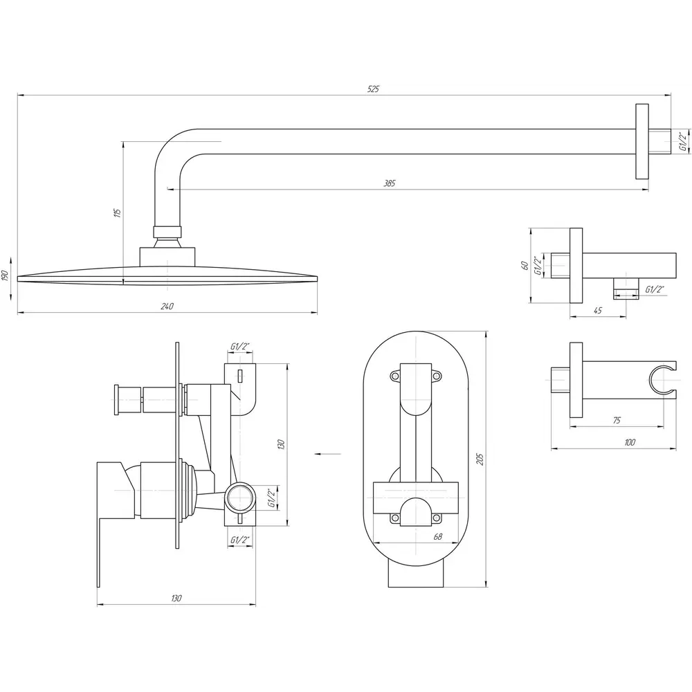 Душова штанга для верхньої лійки, монтаж зі стіни