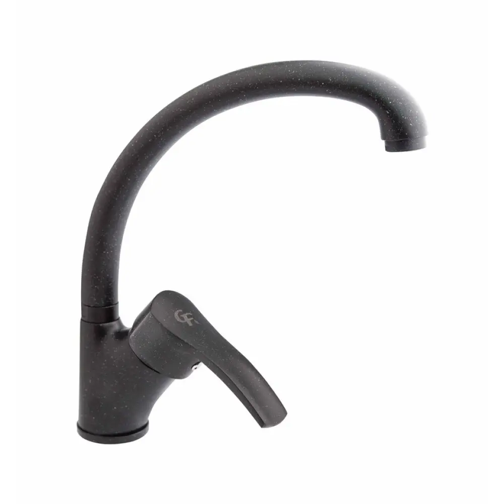 Змішувач для кухні GF (BLA)S-03-012F виготовлений з силуміну. Має матову поверхню чорного кольору, завдяки якій виглядає оригінально. Змішувач виконаний в класичному стилі, з високим С-виливом і зручною ручкою для перемикання холодної і гарячої води.