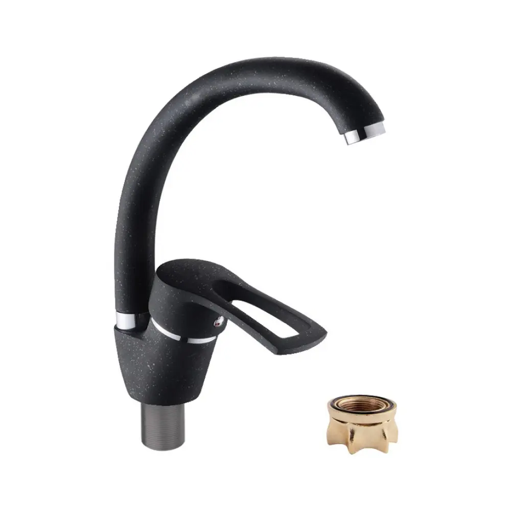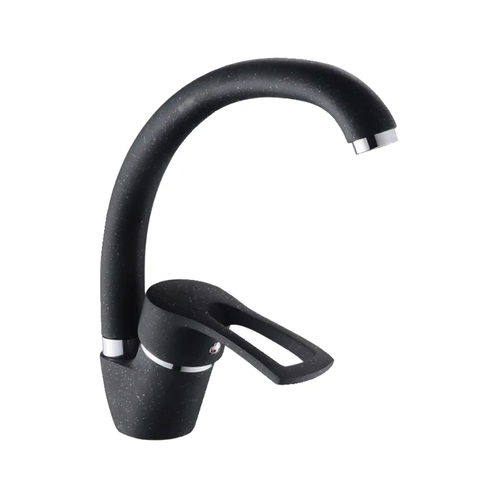 Змішувач для кухні GF (BLA)S-04-008F виготовлений з силуміну. Має матову поверхню чорного кольору, завдяки якій виглядає оригінально. Змішувач виконаний в класичному стилі, з високим С-виливом і зручною ручкою для перемикання холодної і гарячої води.