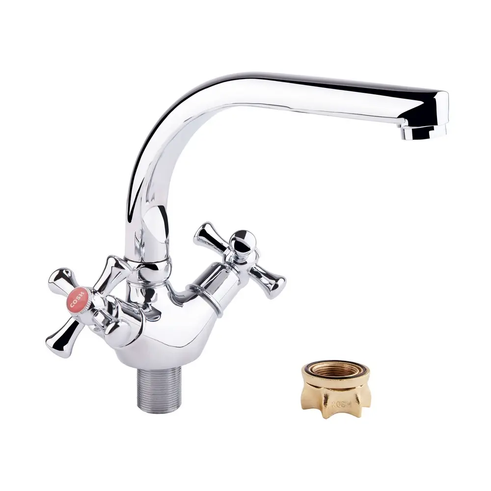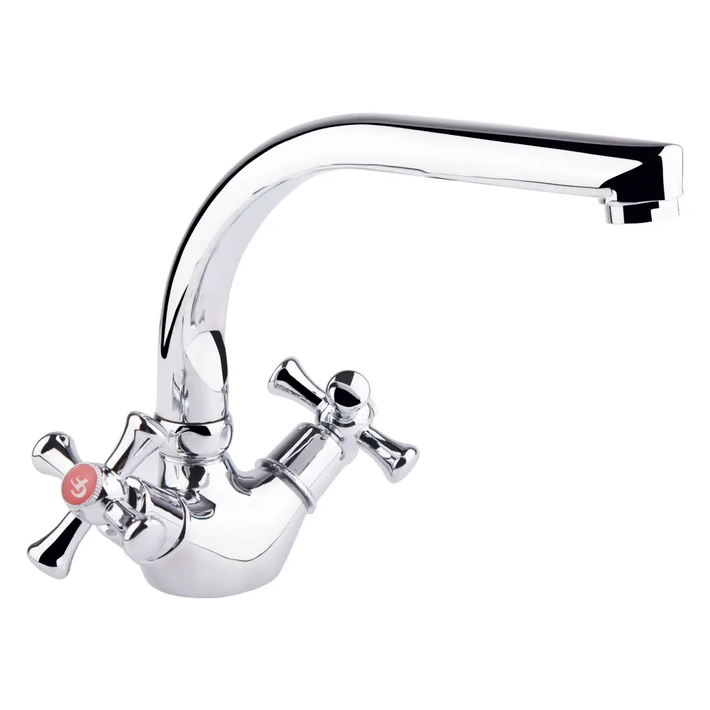Змішувач для кухні GF (CRM)S-21-276F виготовлений з силуміну. Завдяки глянсовому хромованому покриттю має оригінальний зовнішній вигляд. Виконаний в класичному стилі, з вентильними ручками для перемикання потоку холодної та гарячої води.
