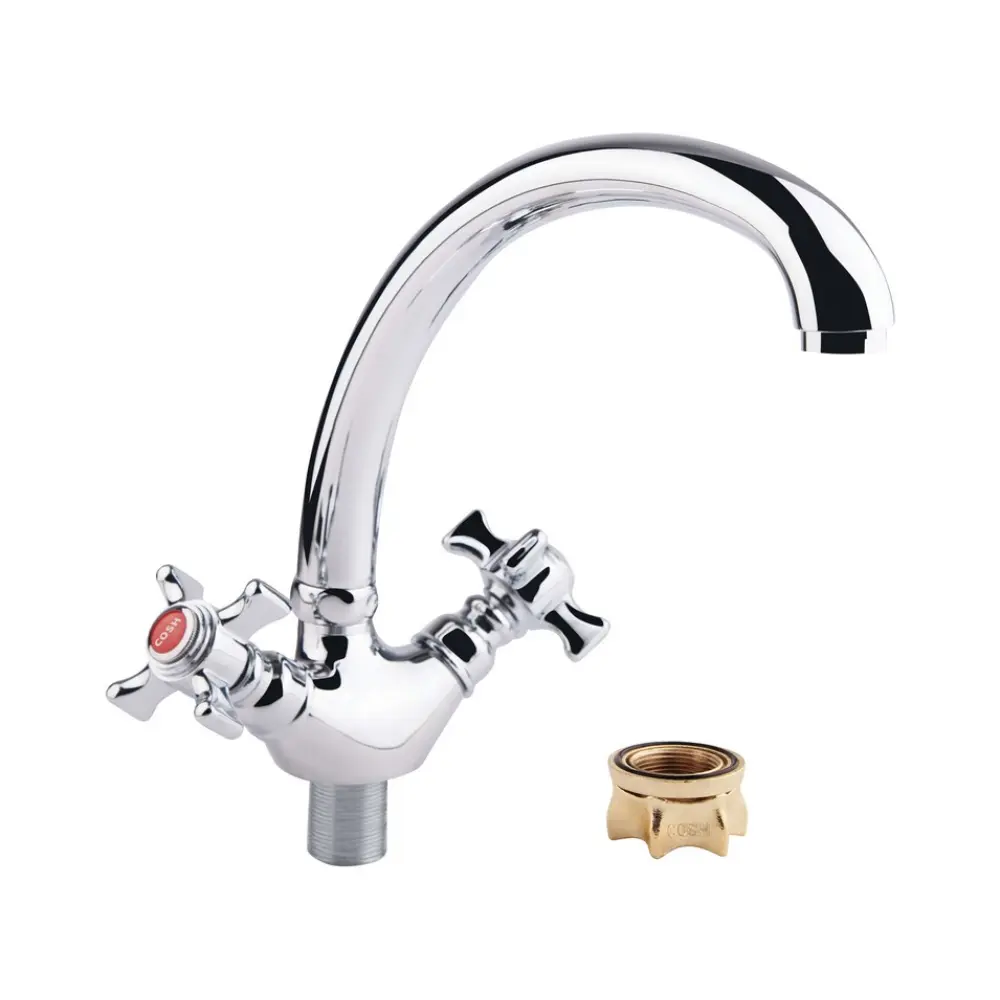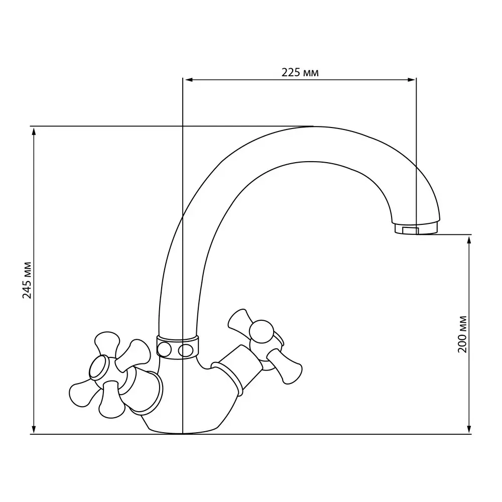 Змішувач для кухні GF (CRM)S-22-273F виготовлений з силуміну. Завдяки глянсовому хромованому покриттю має оригінальний зовнішній вигляд. Виконаний в класичному стилі, з вентильними ручками для перемикання потоку холодної та гарячої води.
