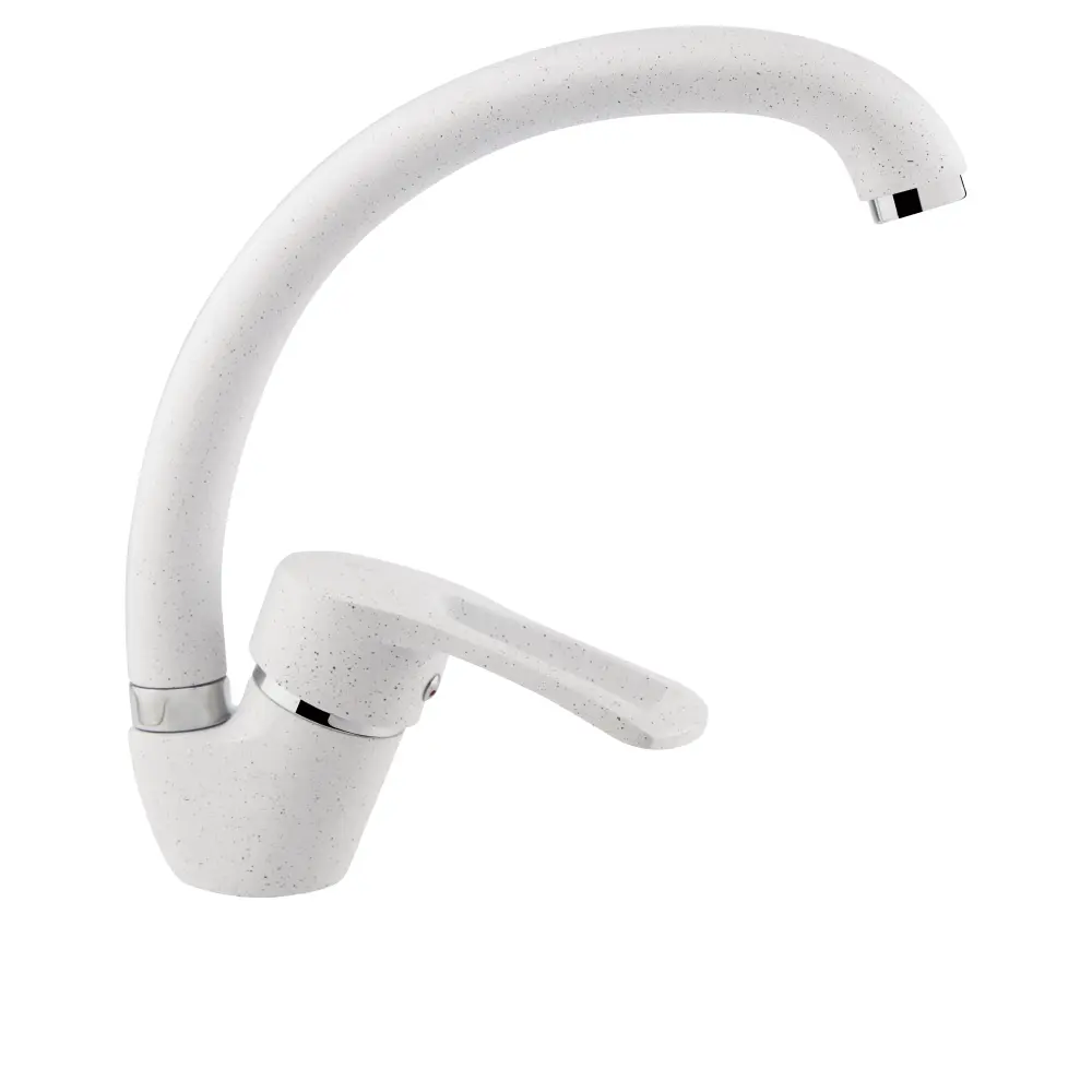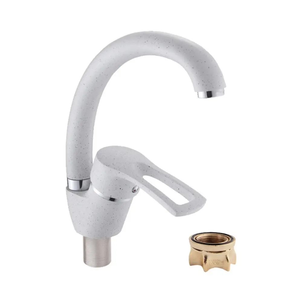 Змішувач для кухні GF (WHI)S-04-008F виготовлений з силуміну. Виконаний в класичному стилі білого кольору, зі зручною ручкою для регулювання холодної та гарячої води. Такий змішувач стане справжньою родзинкою в інтер‘єрі кухні.