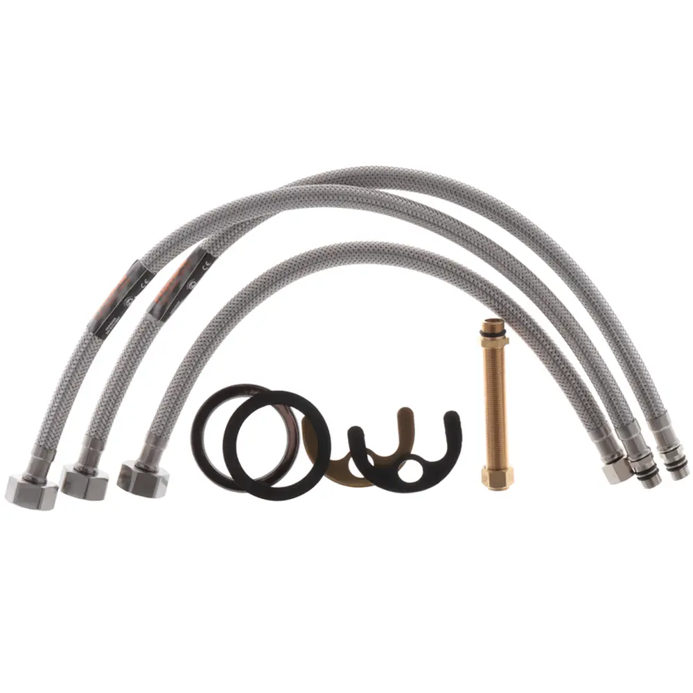 Аератор Neoperl, 2 гнучких підводки 45 см (М10 1/2 ГШ) і підводка для підключення питної води 30 см (1/2 на 3/8 ГГ) з нержавіючої сталі, кріпильна шпилька