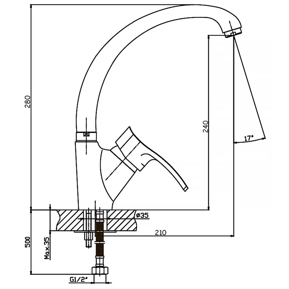 Висота змішувача (мм)