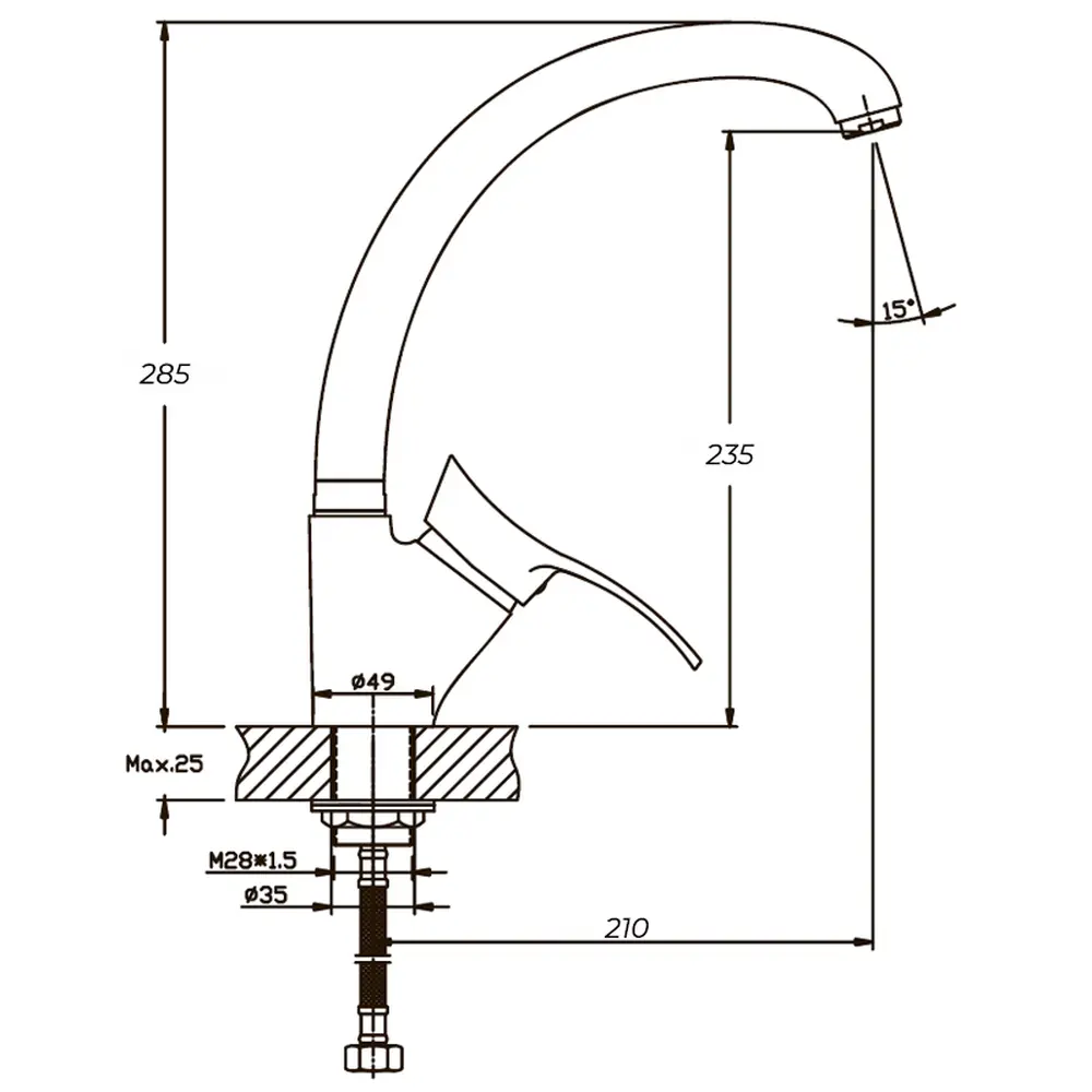 Висота змішувача (см)