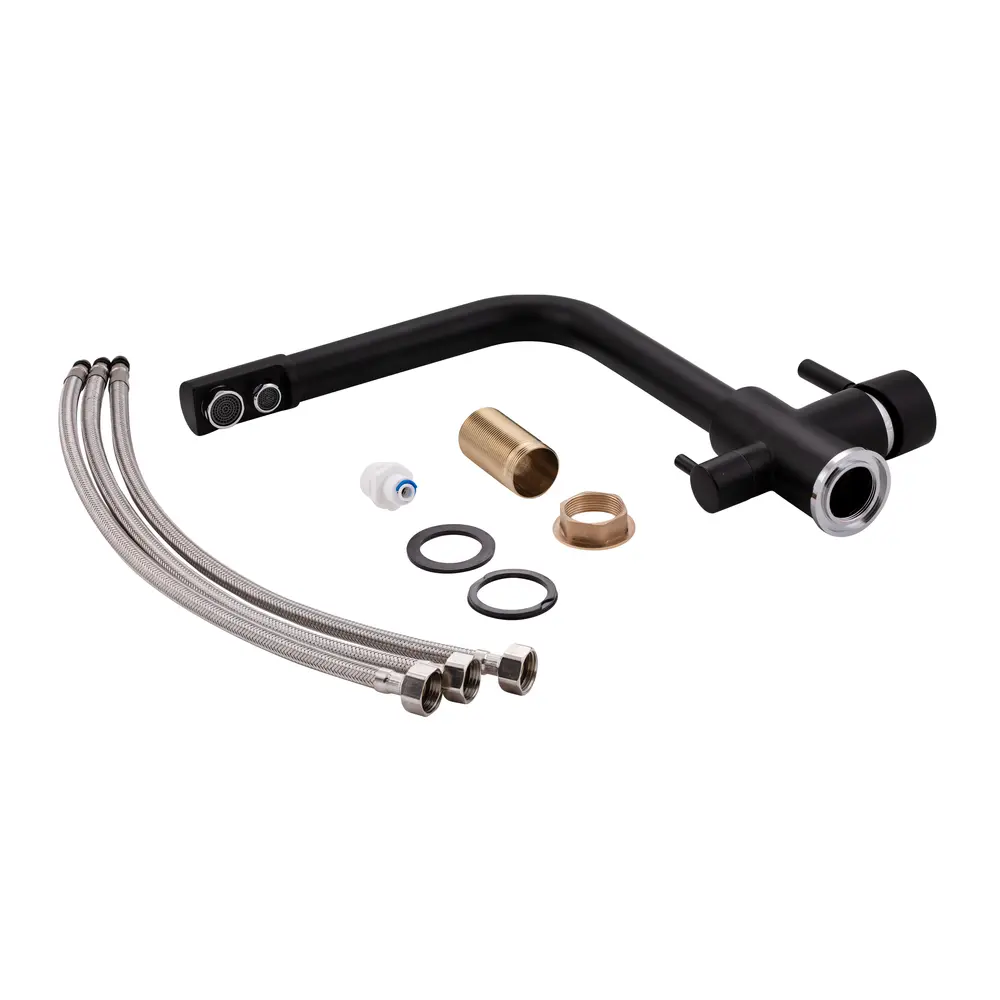 Змішувач для кухні з фільтром Lidz (BLA) Over 38 020 виготовлений з високоякісної латуні. Завдяки матовій чорній поверхні має оригінальний зовнішній вигляд. Виконаний у сучасному стриманому стилі. У виробі передбачено 2 виливу: під воду для побутових витрат і з фільтром для питної води. Такий змішувач має додатковий важіль, що дозволяє перемикати режим на подачу питної води. Він не тільки зручний і практичний, але і стане ідеальною знахідкою на кухні.