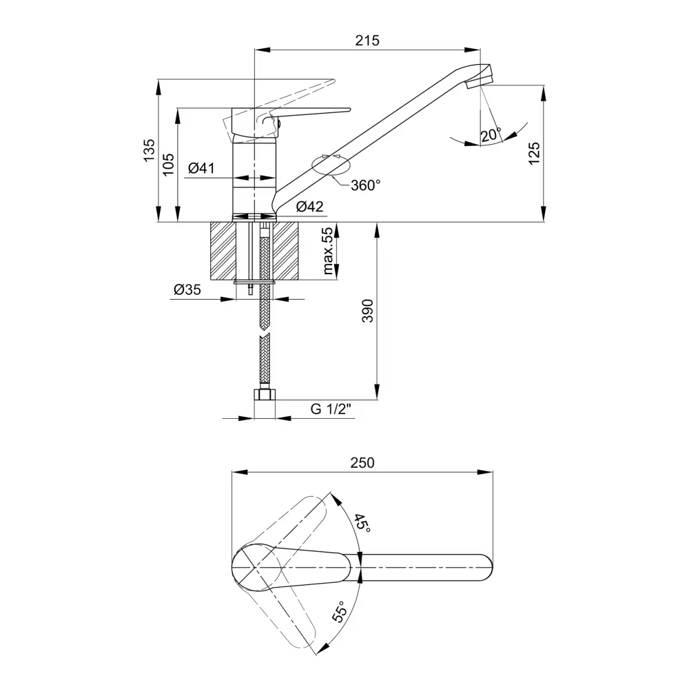 Змішувач для кухні Lidz (CRM) 14 34 002 виготовлений з цинку. Завдяки хромованому покриттю має оригінальний зовнішній вигляд. Виконаний в класичному стилі зі зручною ручкою для перемикання холодної та гарячої води. Такий змішувач не тільки практичний, але й ідеально доповнить інтер‘єр кухні.