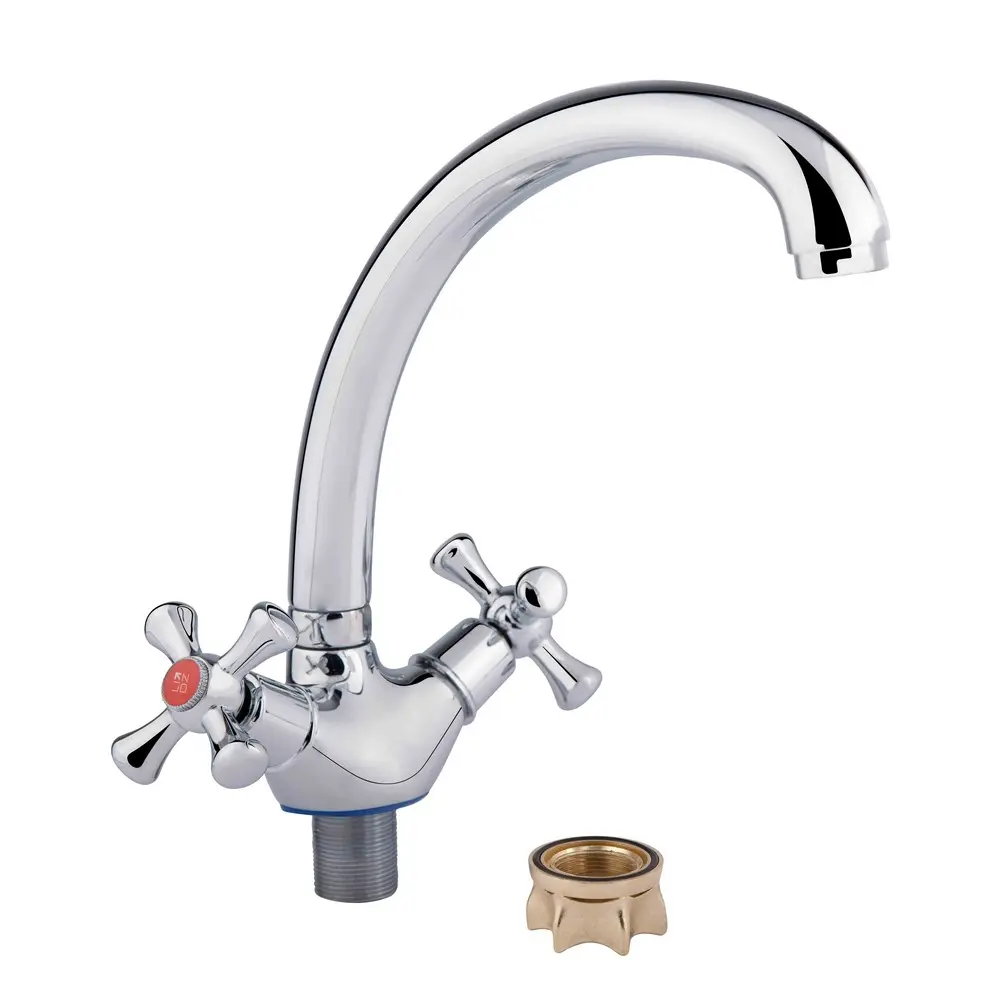 Змішувач для кухні Lidz (CRM) 75 21 271F-3 виготовлений з цинку. Завдяки глянсовому хромованому покриттю має оригінальний зовнішній вигляд. Виконаний в класичному стилі, з вентильними ручками для перемикання потоку холодної та гарячої води.