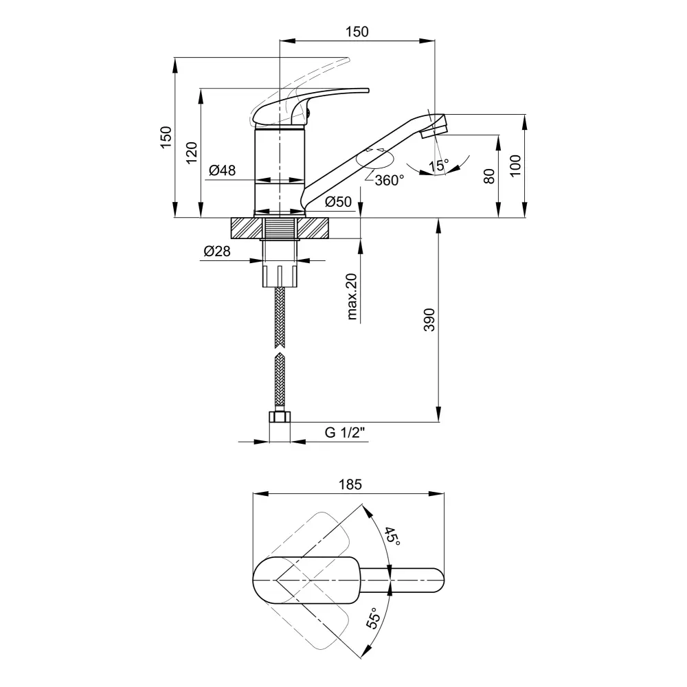 Змішувач, Гнучкий підвід, Кріплення