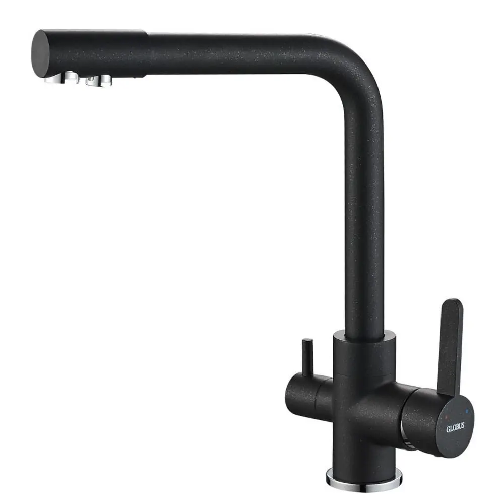 Кухонний змішувач Globus Lux LAZER GLLR-0444-1-ONIX ЧОРНИЙ комбінований під ОСМОС на гайці
