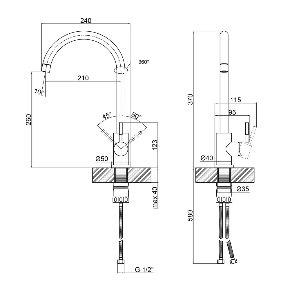Змішувач, Гнучкий підвід, Кріпильні деталі