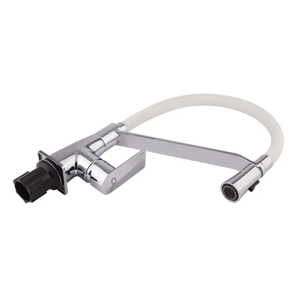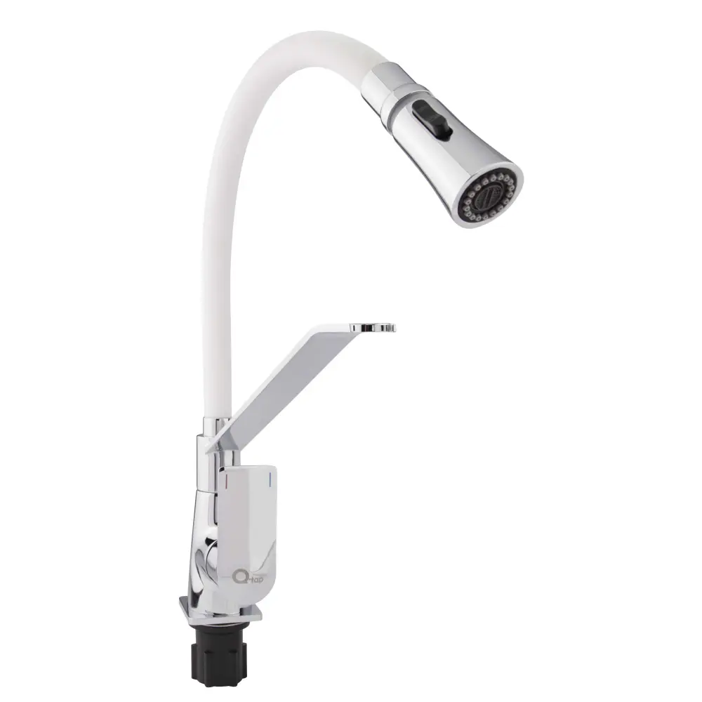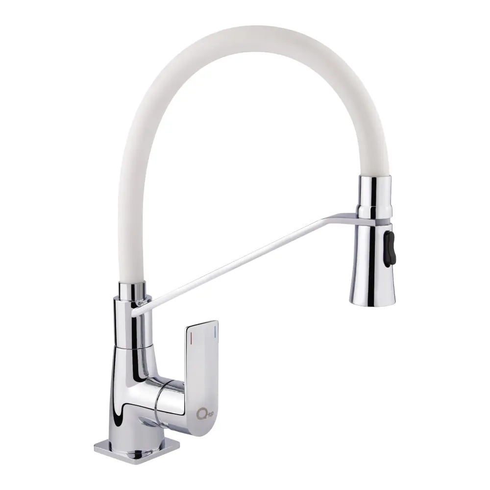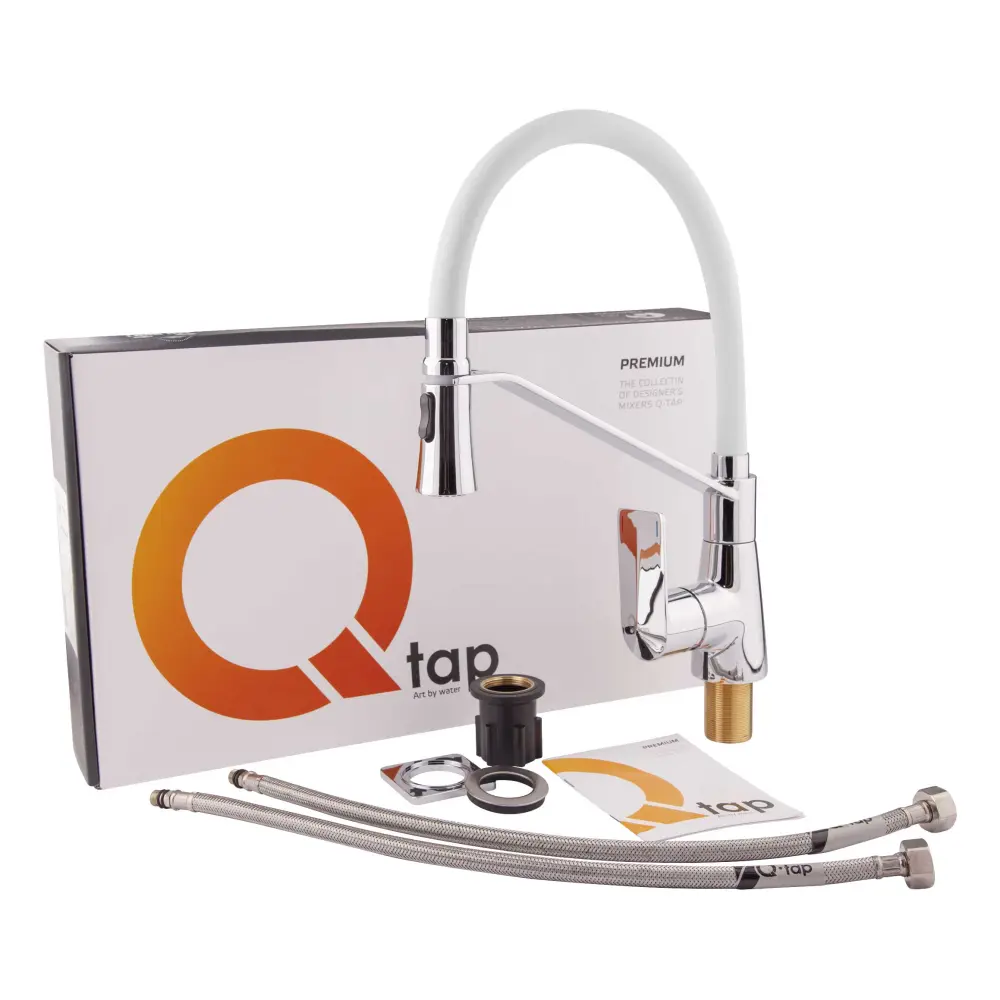 Змішувач рефлекторний для кухні Qtap Estet CRW 007F виготовлений з високоякісної харчової латуні, яка стійка до впливу корозії, ударів і появи тріщин. Глянсове хромоване покриття не тільки підвищує довговічність змішувача, а й надає йому привабливості. Змішувач має одноважільне управління, за допомогою якого можна відрегулювати температуру і напір холодної та гарячої води. Виконаний в сучасному стриманому дизайні, з білим рефлекторним виливом, який оригінально доповнить інтер‘єр кухні.