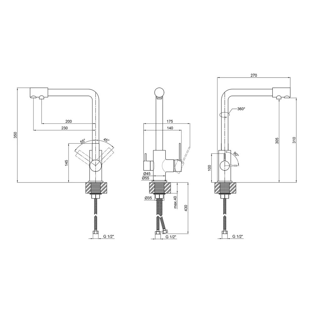 Змішувач, Гнучкий підвід, Кріпильні деталі