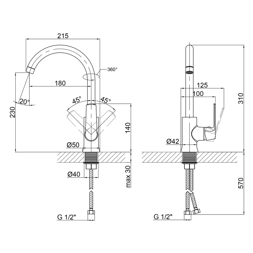 Змішувач, Гнучкий підвід, Кріпильні деталі
