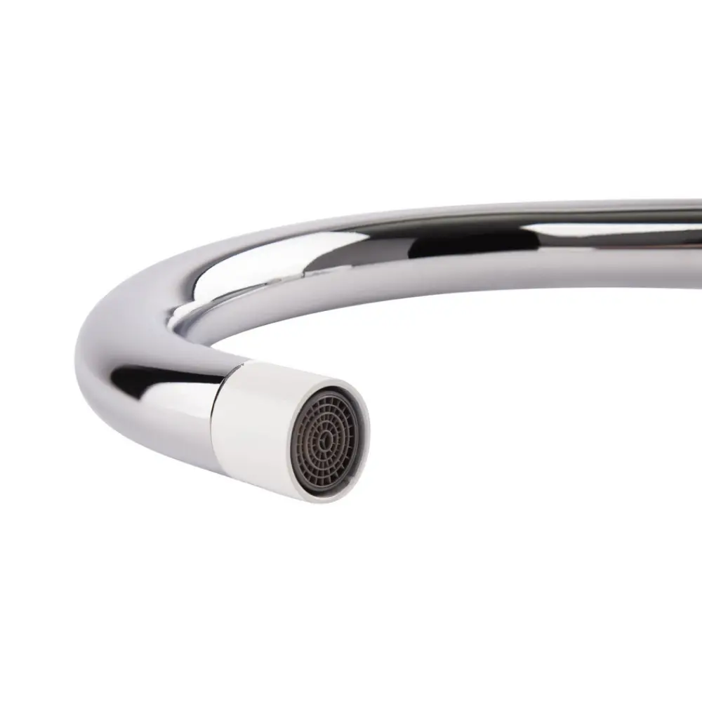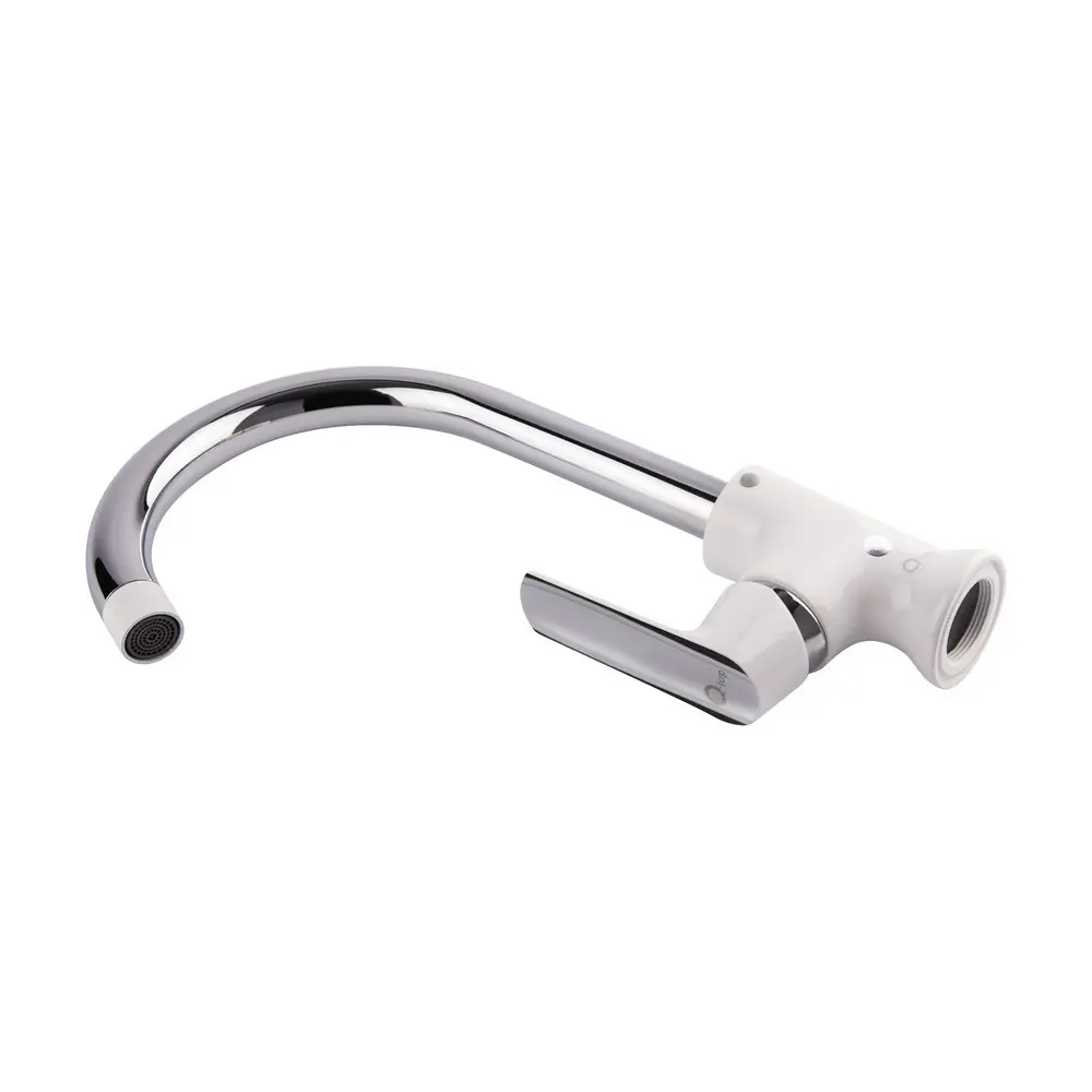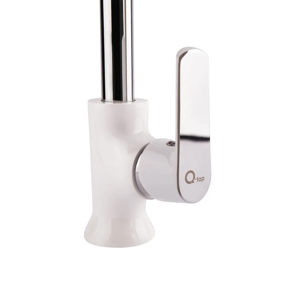 Змішувач для кухні Qtap Fresh WCR 007F виготовлений з високоякісної харчової латуні, яка стійка до впливу корозії, ударів і появи тріщин. Глянсове хромоване покриття не тільки підвищує довговічність змішувача, а й надає йому привабливості. Змішувач має одноважільне управління, за допомогою якого можна відрегулювати температуру і напір холодної та гарячої води. Виконаний в сучасному стилі, корпус змішувача має матову поверхню білого кольору в поєднанні з хромованим виливом.