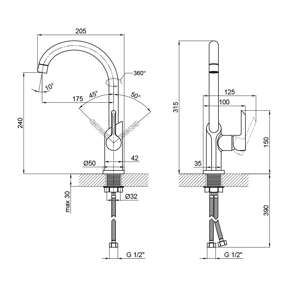Змішувач, Гнучкий підвід, Кріпильні деталі