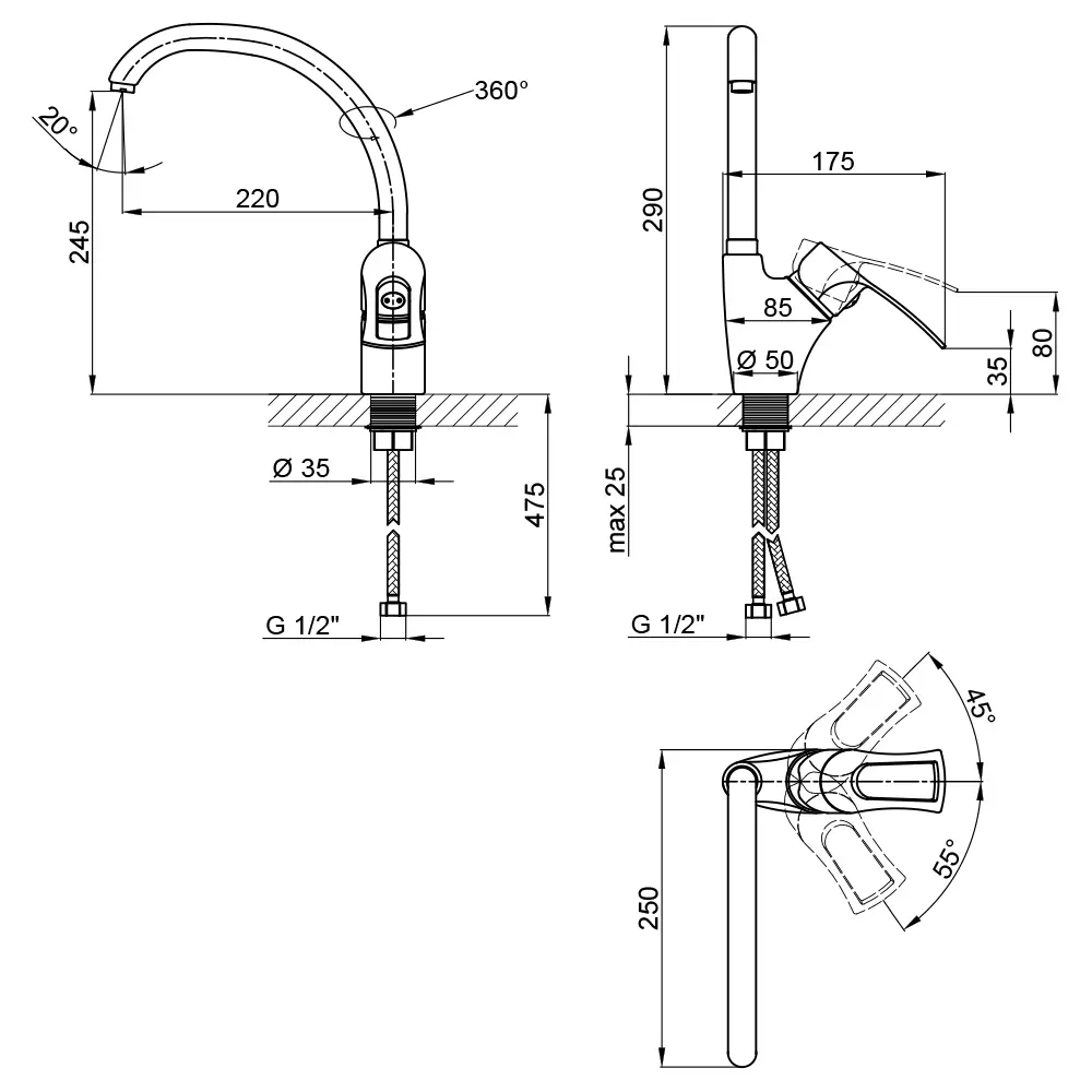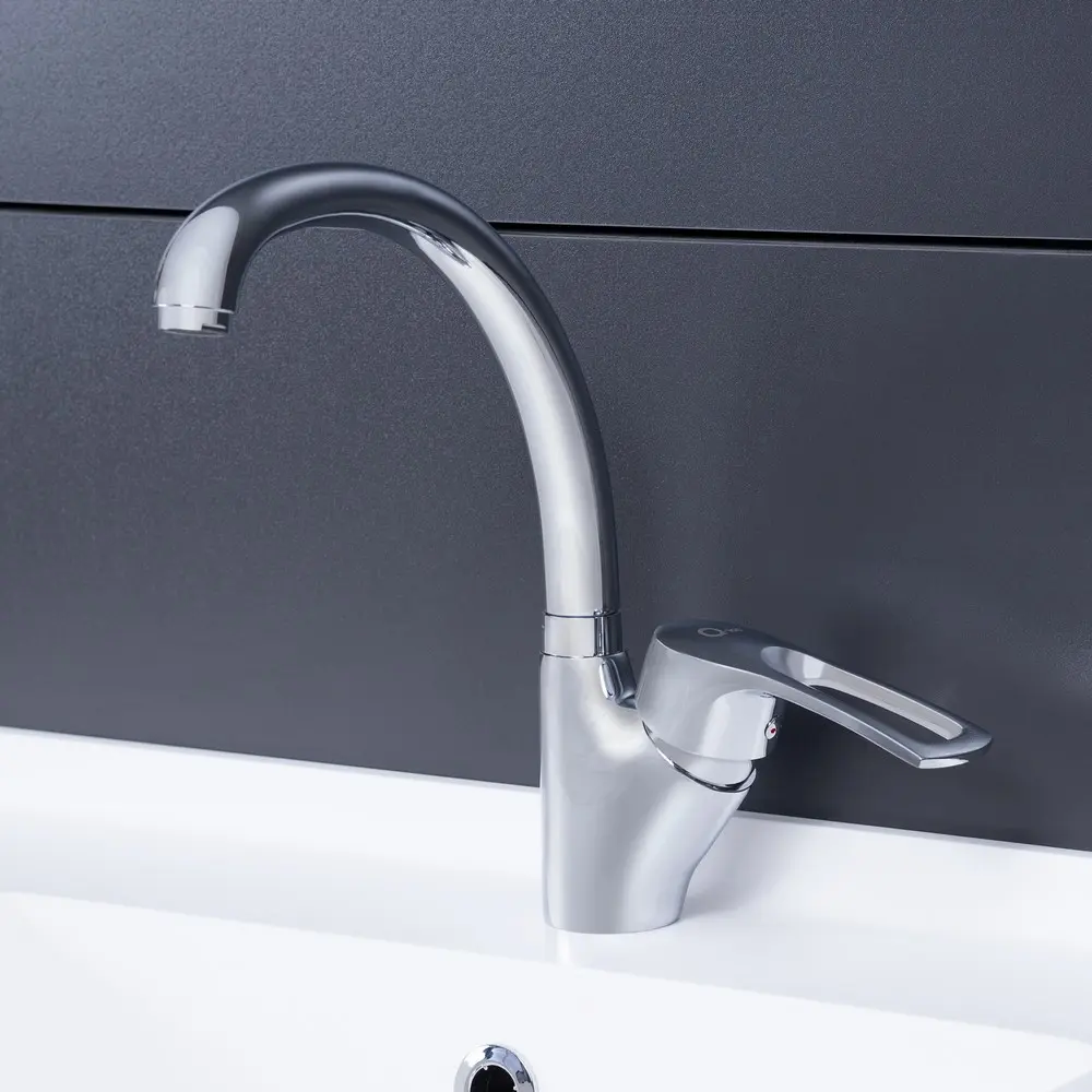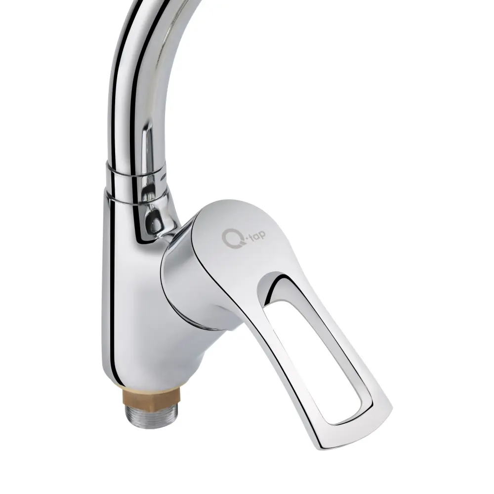 Змішувач для кухні Qtap Hansberg CRM 007F виготовлений з високоякісної харчової латуні, яка стійка до впливу корозії, ударів і появи тріщин. Глянцеве хромоване покриття не тільки підвищує довговічність змішувача, а й надає йому привабливості. Змішувач має одноважільне управління, за допомогою якого можна відрегулювати температуру і напір холодної та гарячої води. Виконаний в сучасному дизайні, який ідеально доповнить інтер‘єр.